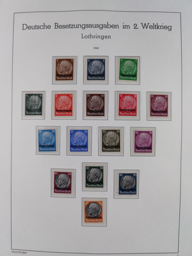 1939/45, postfrische und winzig ungebrauchte/gestempelte Sammlung mit vielen kompletten Gebieten, dabei Böhmen und Mähren mit Zulassungsmarke vielen Zwischenstegpaaren, teils mit Pl.-Nr. und Plattensternen, Estland, Flämische Legion IX-XIV Klb., XX A, Frankreich inkl. Legion mit Eisbärblock kpl. und teils mit Zierfeldern, Azadhind kpl. mit VIIBa-c, Generalgouvernement mit Klb. 4U, Kanalinseln, Kotor 7-10, Laibach kpl. mit 19b postfrisch (KB Brunel), Lettland, Litauen, Luxemburg mit GS-Karten, Mazedonien, Montenegro 1-9, 10-13 sign. Krischke, 20-28 sign. Ercegovic, 29-35, Serbien kpl. inkl. Bogen Mi.-Nr. 62/65II, 83/85 sowie 94/98 und ZS-Paaren, Ukraine, Zante, Zara, etc., gute Erhaltung