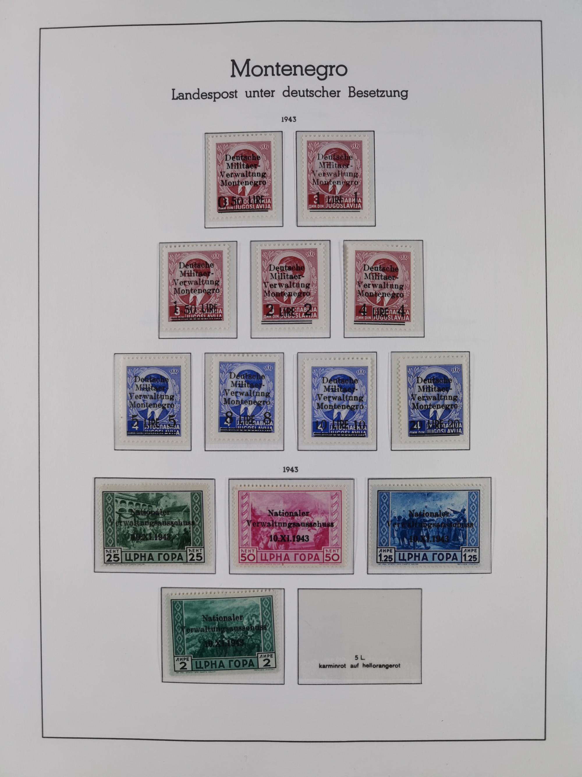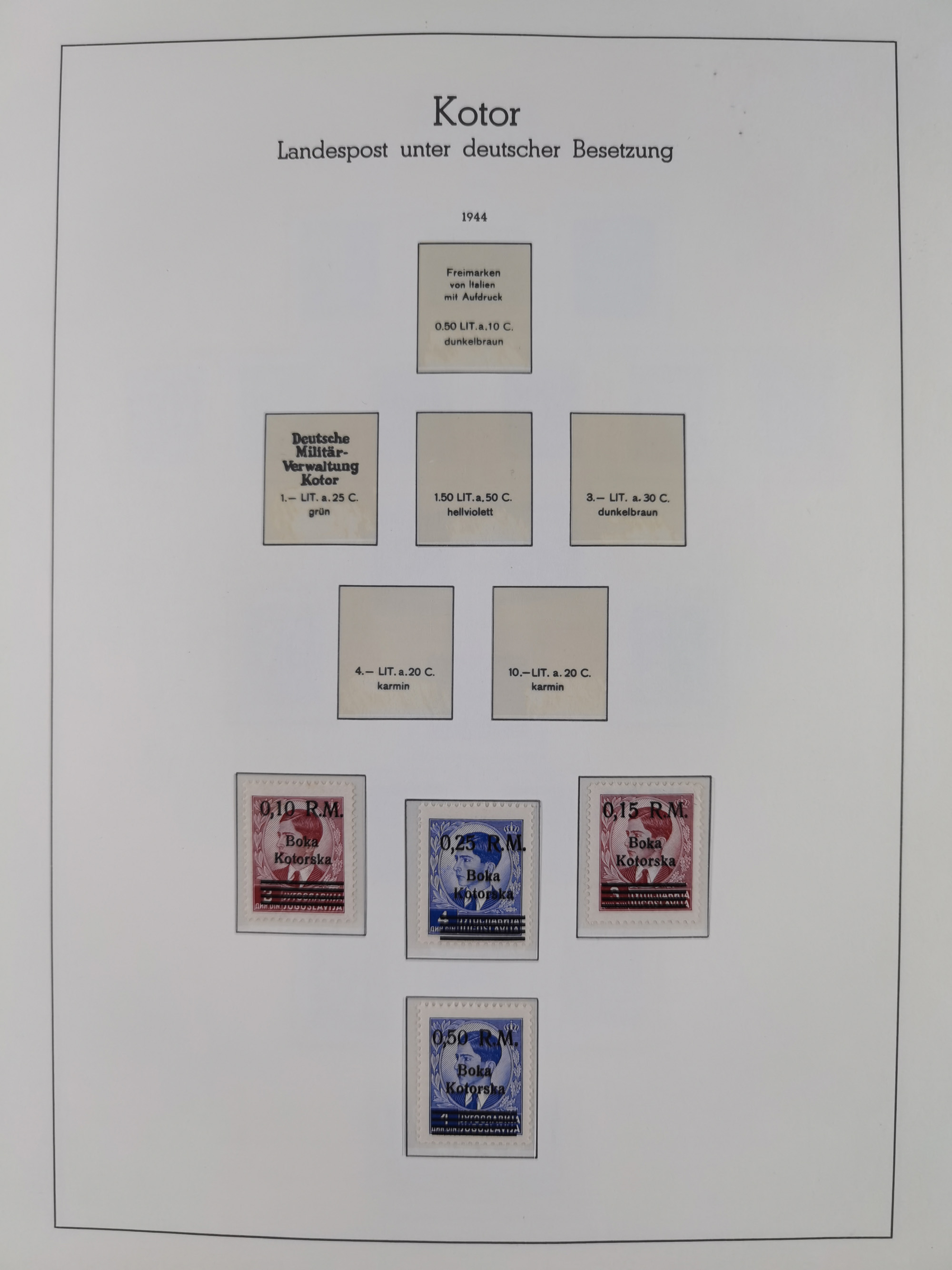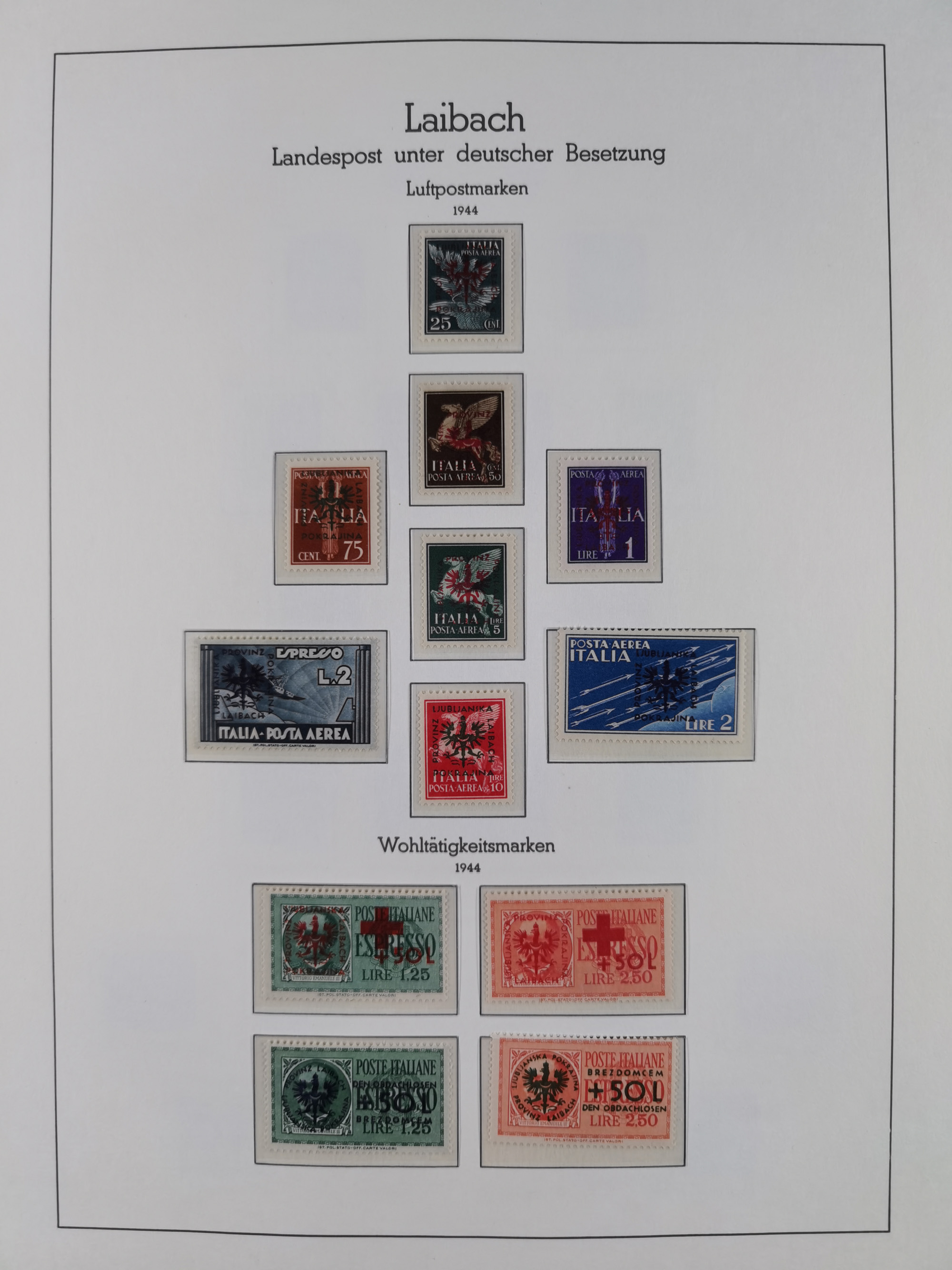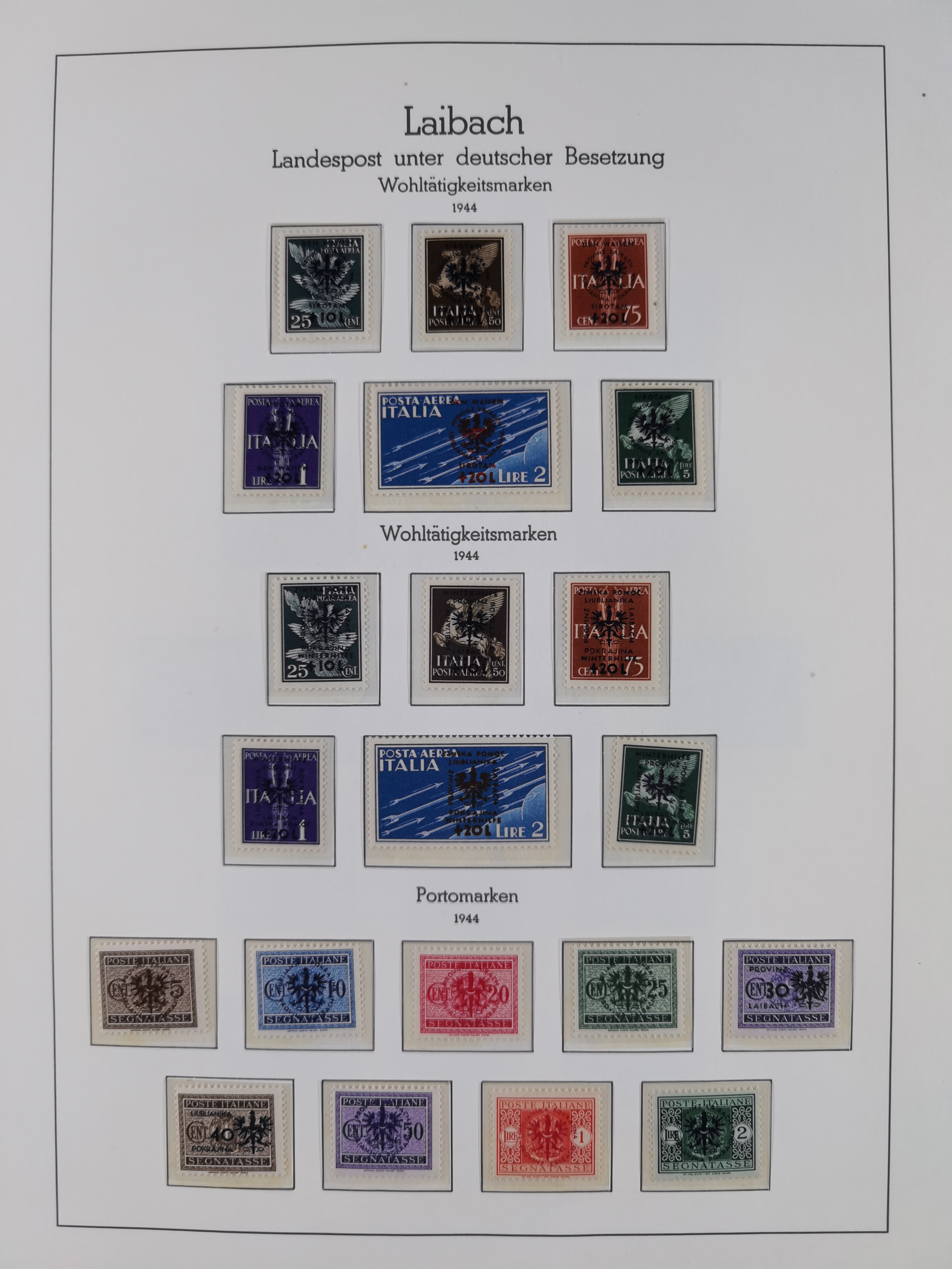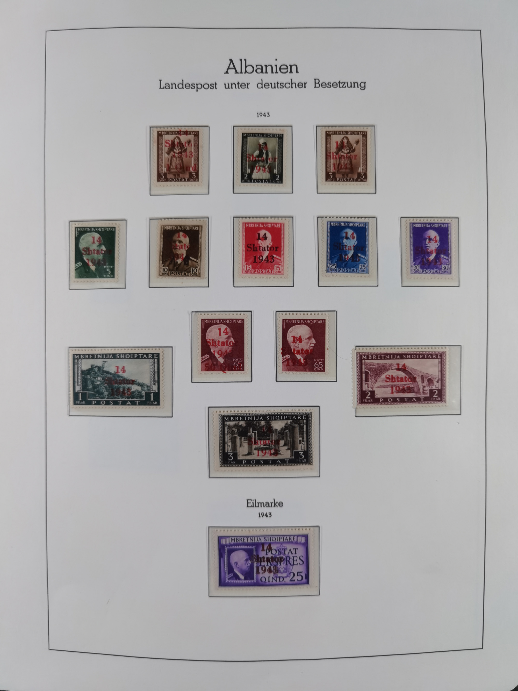 Albanien bis Zara, postfrische Sammlung im Lindner-Falzlos-Album mit Albanien komplett, mit diversen Abarten und einem Bogen Michel-Nr. 12, Elsaß, Saint-Nazaire 1 und 2, dabei Mi.-Nr. im Bogen, etwas Kanalinseln, Kotor komplett, Kurland komplett, Laibach komplett und mit Abarten sowie nicht ausgegebene IB-VI B im senkrechten, ungezähnten Streifen, Probedrucke der Portomarken 1 P, 5 P, 8 P, Litauen, Lokalausgabe Rokiskis, jeweils drei Sätze in schwarz und rot in den Typen I, II und III, Mazedonien mit Besonderheiten, Pleskau mit einigen Abarten, Serbien komplett, Zante sowie schöner Teil Zara u.a. mit 7, 12, 15, 25, 37 und 38 und Portomarken, Flämische Legion und Frankreich II-X, alles in sauberer Erhaltung mit zahlreichen Befunden oder Attesten