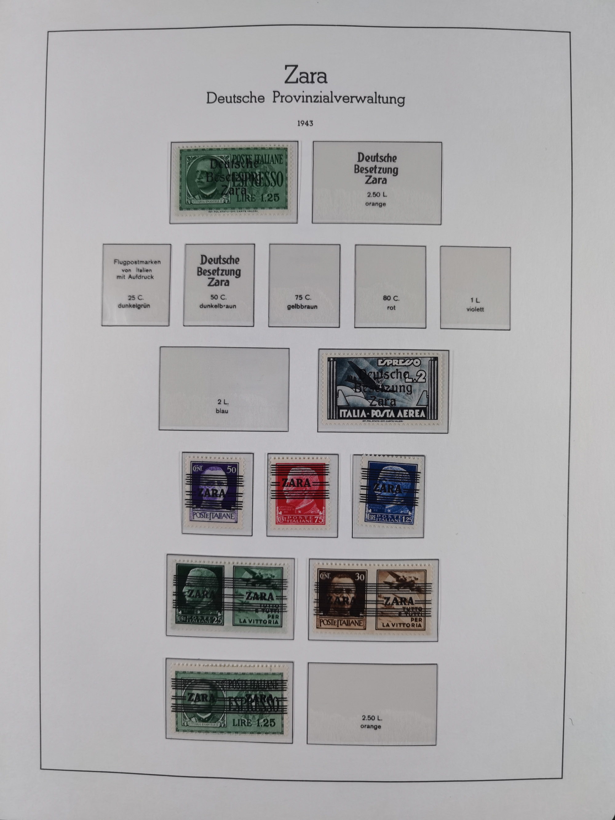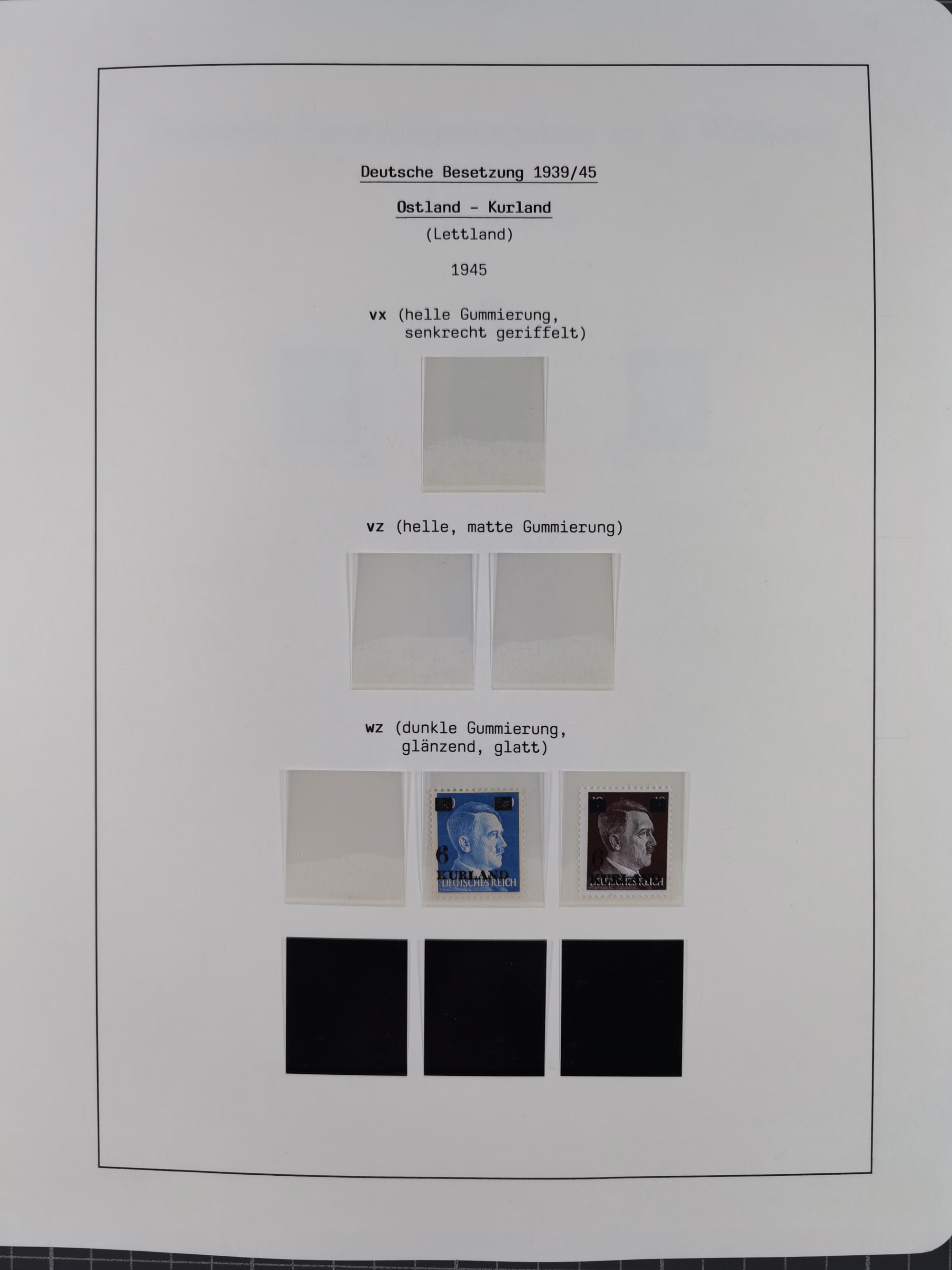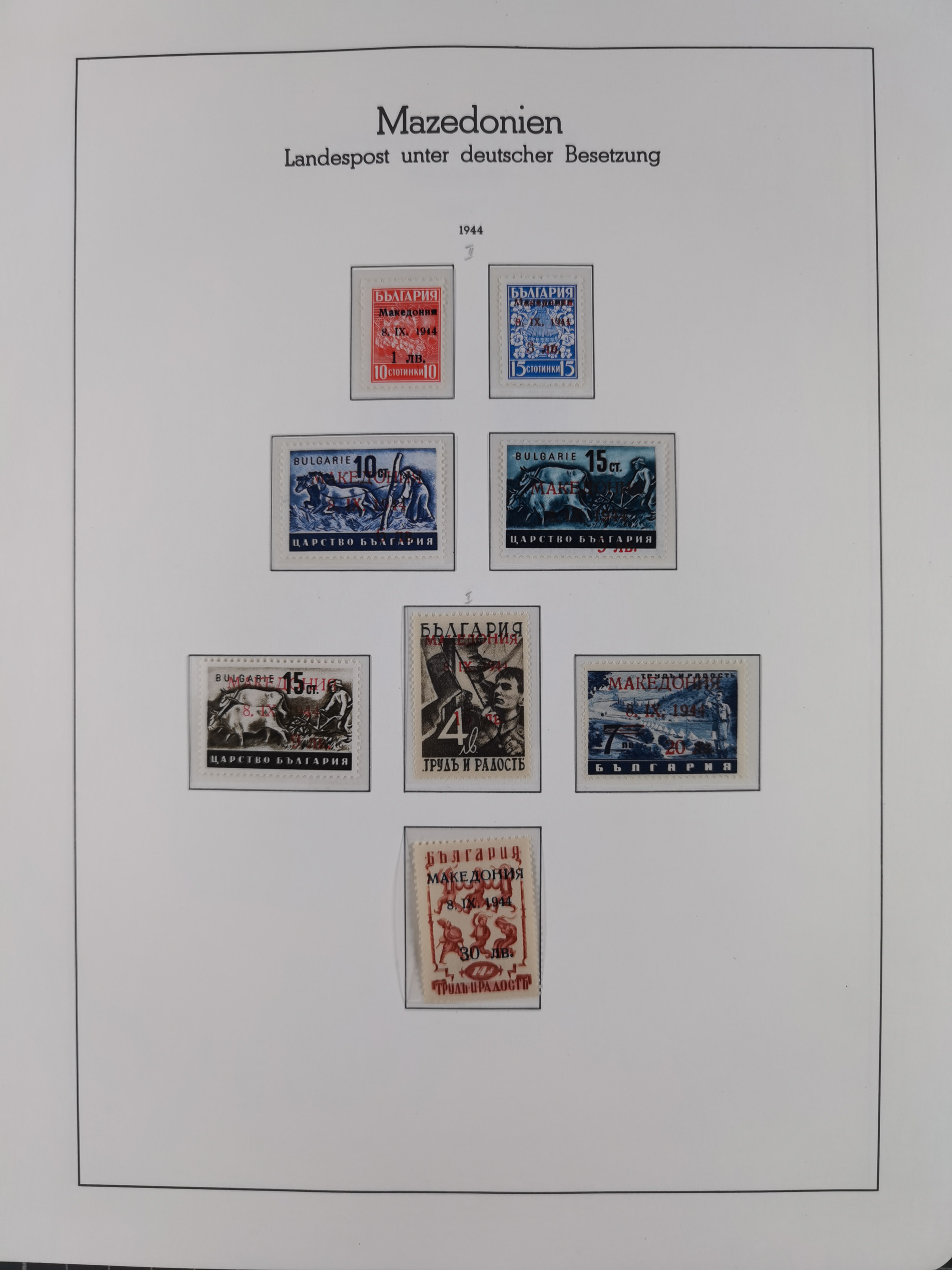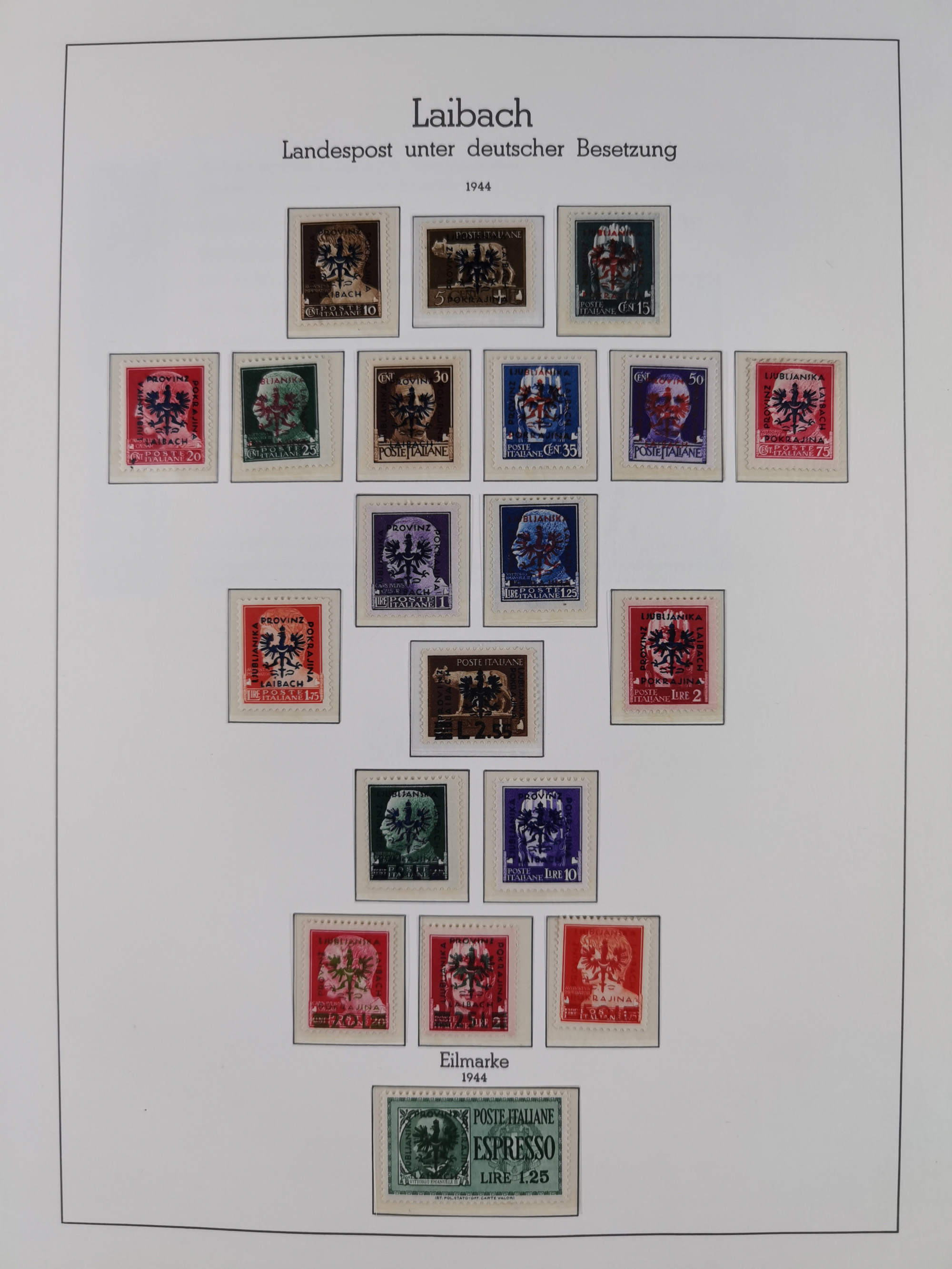 Albanien bis Zara, postfrische Sammlung im Lindner-Falzlos-Album mit Albanien komplett, mit diversen Abarten und einem Bogen Michel-Nr. 12, Elsaß, Saint-Nazaire 1 und 2, dabei Mi.-Nr. im Bogen, etwas Kanalinseln, Kotor komplett, Kurland komplett, Laibach komplett und mit Abarten sowie nicht ausgegebene IB-VI B im senkrechten, ungezähnten Streifen, Probedrucke der Portomarken 1 P, 5 P, 8 P, Litauen, Lokalausgabe Rokiskis, jeweils drei Sätze in schwarz und rot in den Typen I, II und III, Mazedonien mit Besonderheiten, Pleskau mit einigen Abarten, Serbien komplett, Zante sowie schöner Teil Zara u.a. mit 7, 12, 15, 25, 37 und 38 und Portomarken, Flämische Legion und Frankreich II-X, alles in sauberer Erhaltung mit zahlreichen Befunden oder Attesten