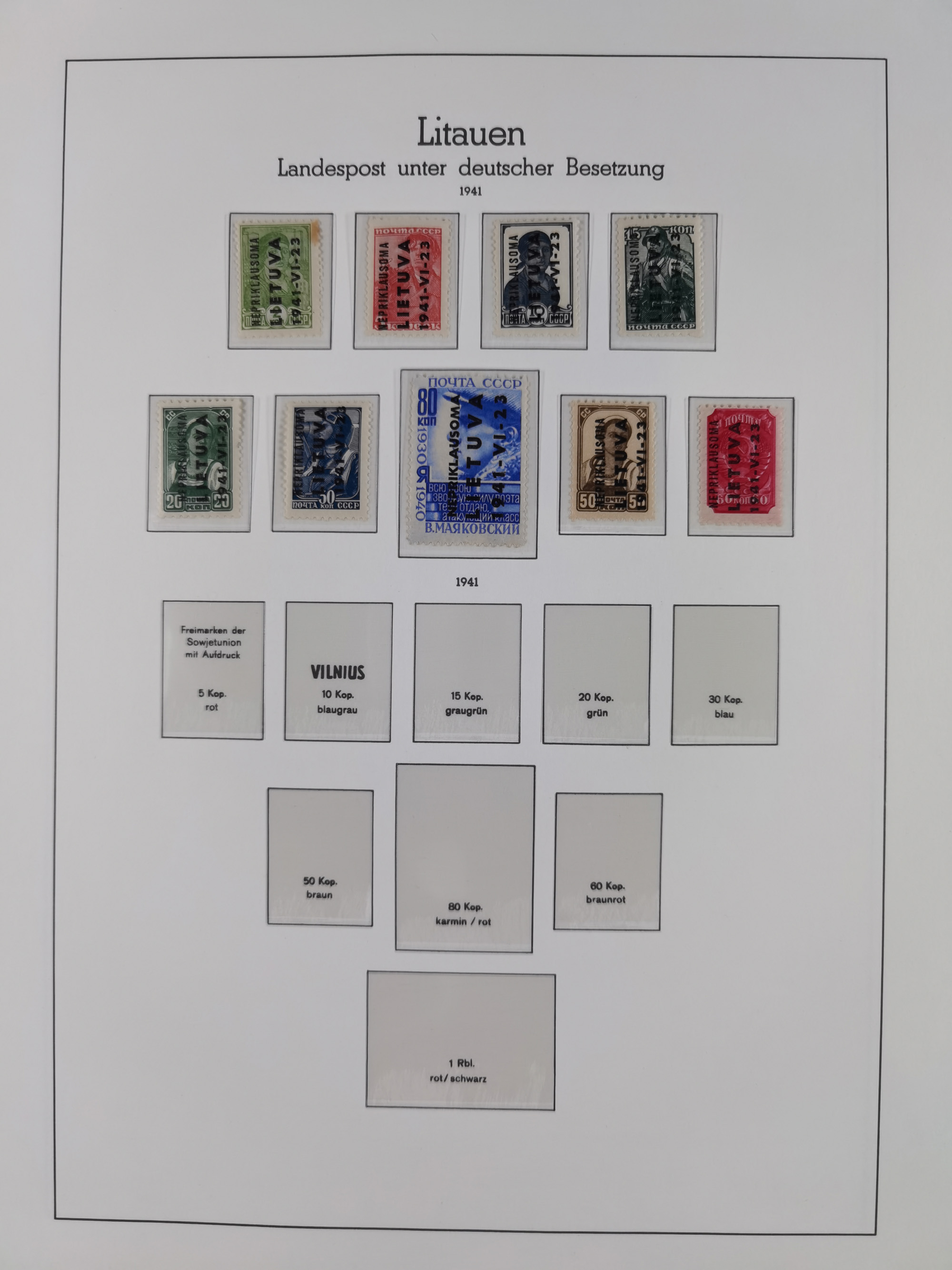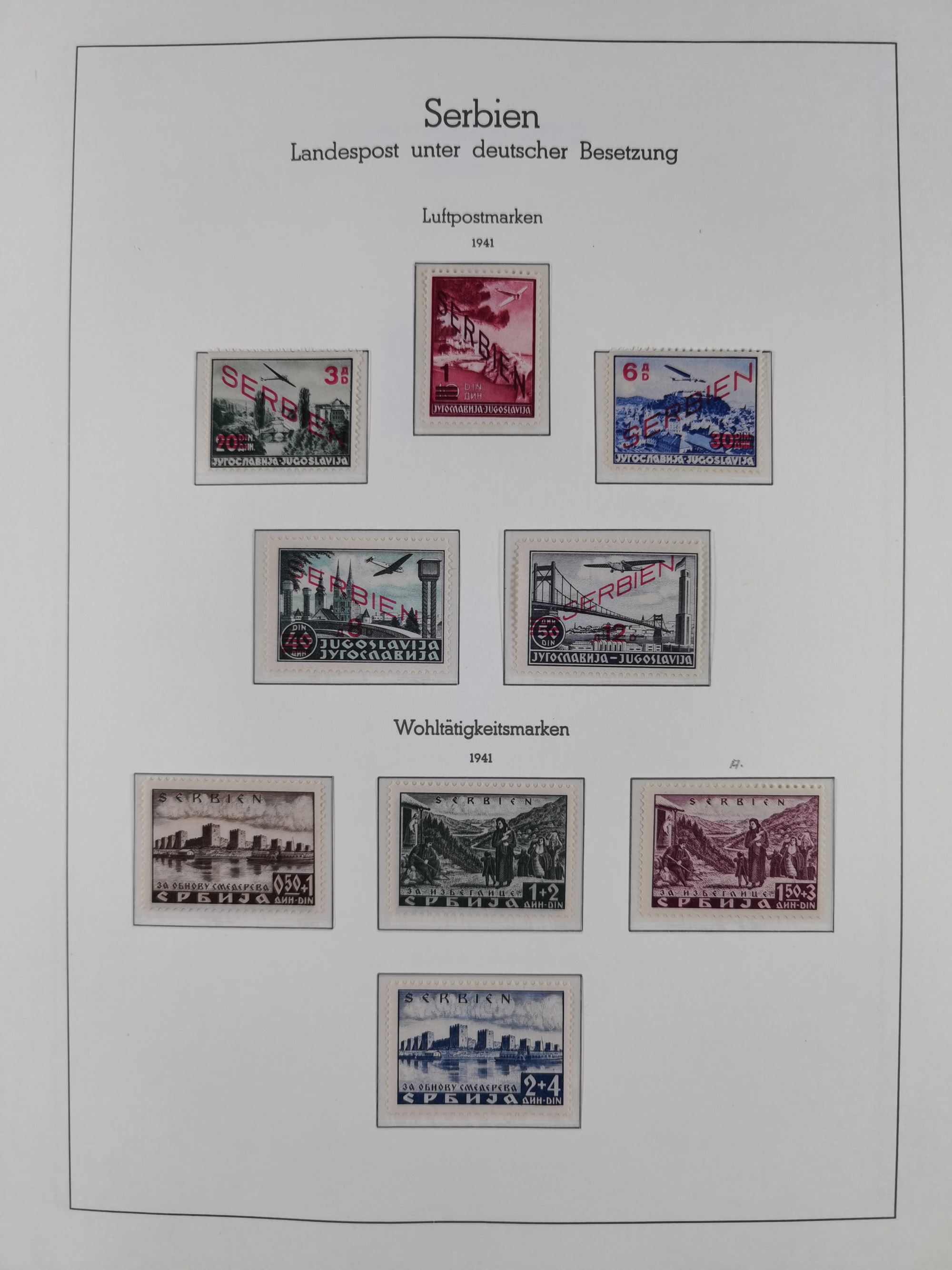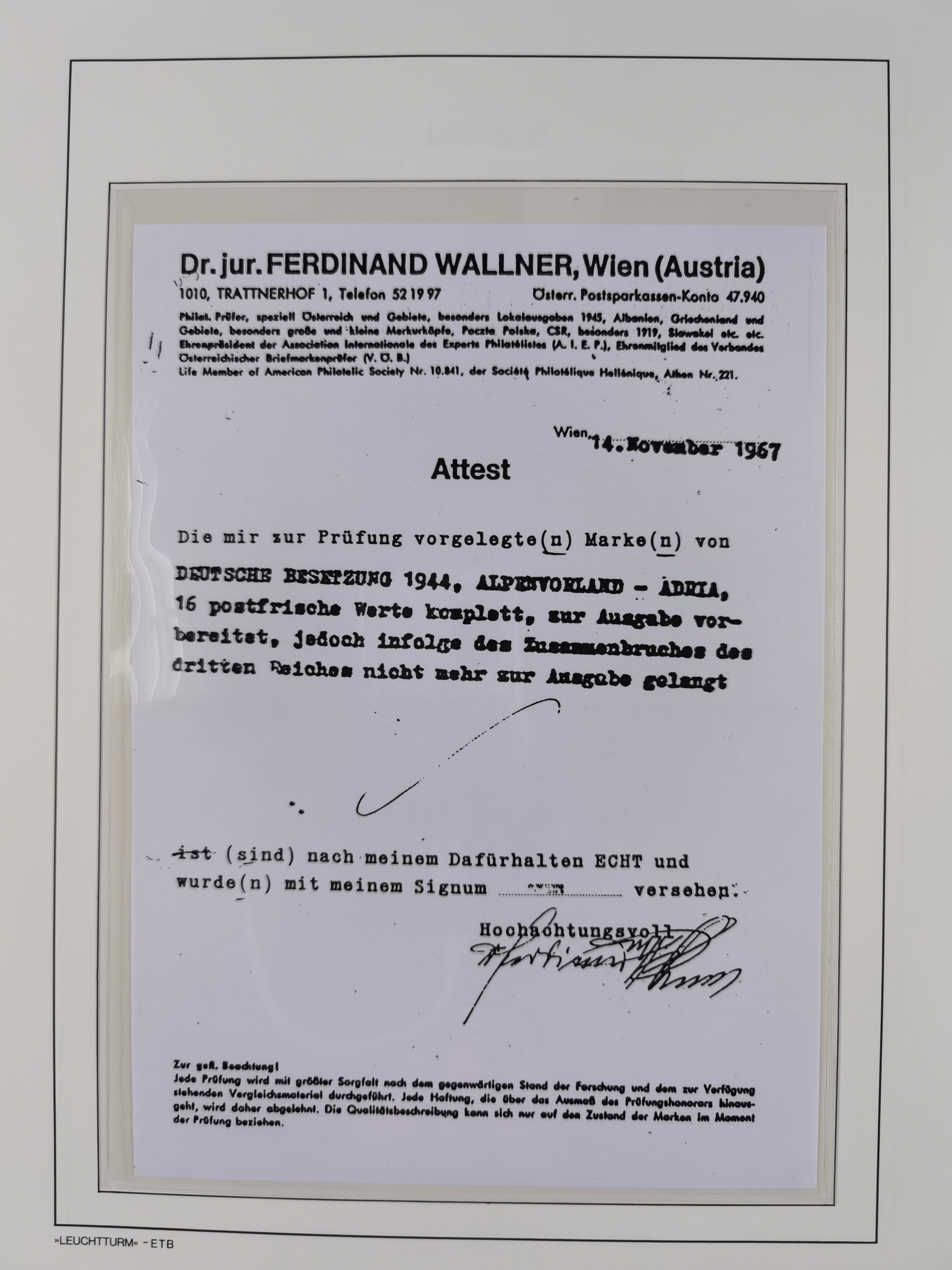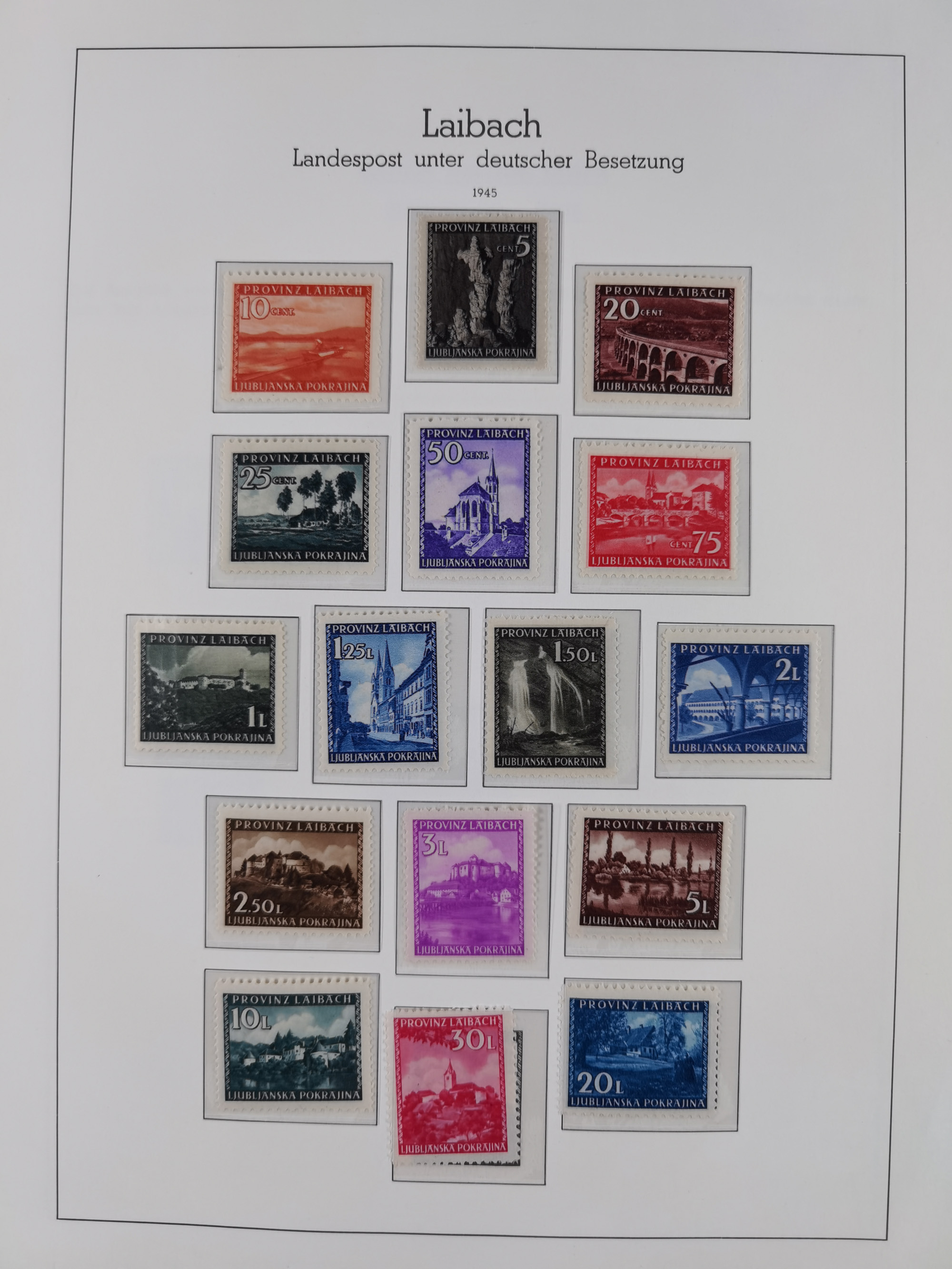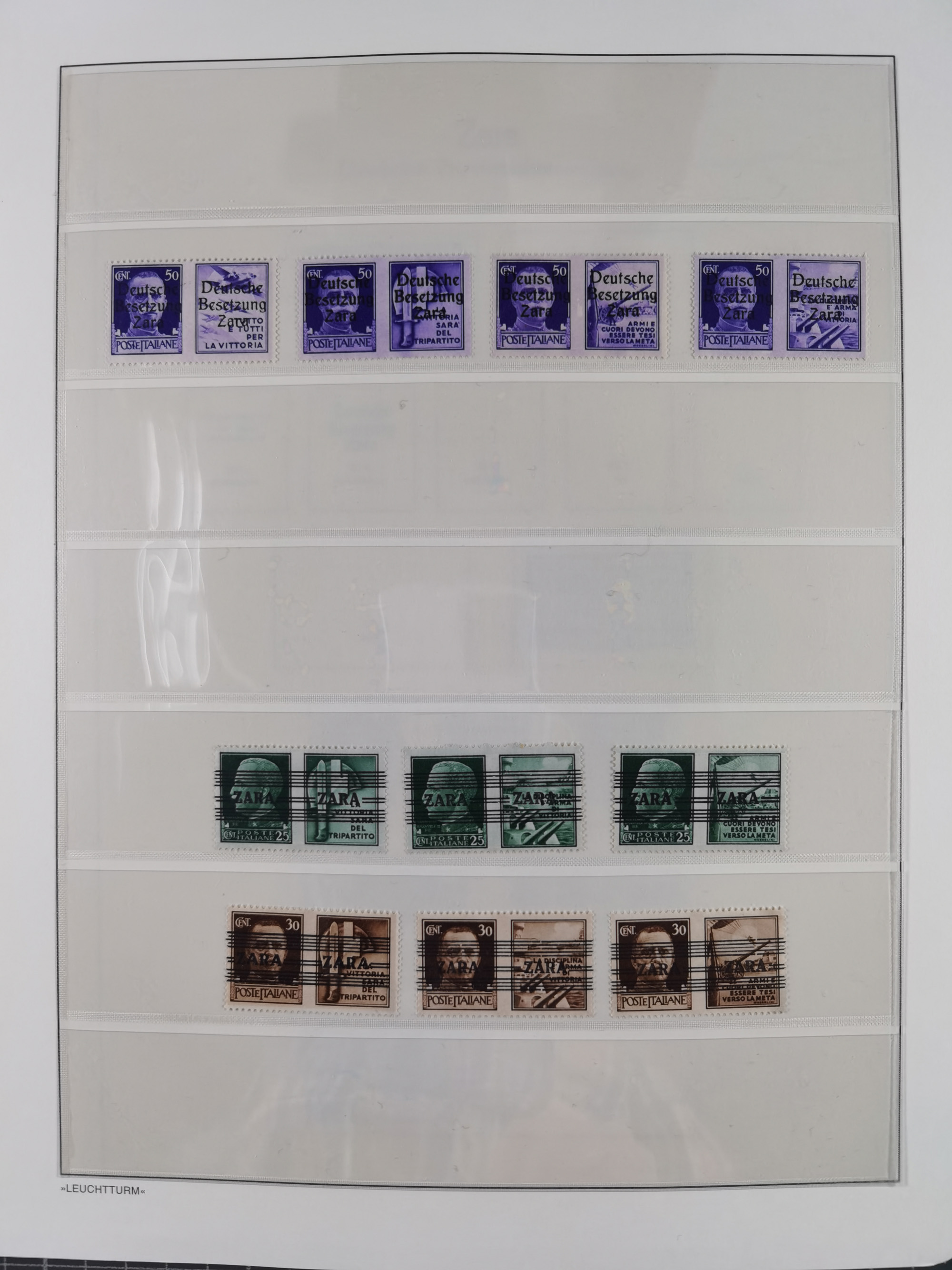 Albanien bis Zara, postfrische Sammlung im Lindner-Falzlos-Album mit Albanien komplett, mit diversen Abarten und einem Bogen Michel-Nr. 12, Elsaß, Saint-Nazaire 1 und 2, dabei Mi.-Nr. im Bogen, etwas Kanalinseln, Kotor komplett, Kurland komplett, Laibach komplett und mit Abarten sowie nicht ausgegebene IB-VI B im senkrechten, ungezähnten Streifen, Probedrucke der Portomarken 1 P, 5 P, 8 P, Litauen, Lokalausgabe Rokiskis, jeweils drei Sätze in schwarz und rot in den Typen I, II und III, Mazedonien mit Besonderheiten, Pleskau mit einigen Abarten, Serbien komplett, Zante sowie schöner Teil Zara u.a. mit 7, 12, 15, 25, 37 und 38 und Portomarken, Flämische Legion und Frankreich II-X, alles in sauberer Erhaltung mit zahlreichen Befunden oder Attesten
