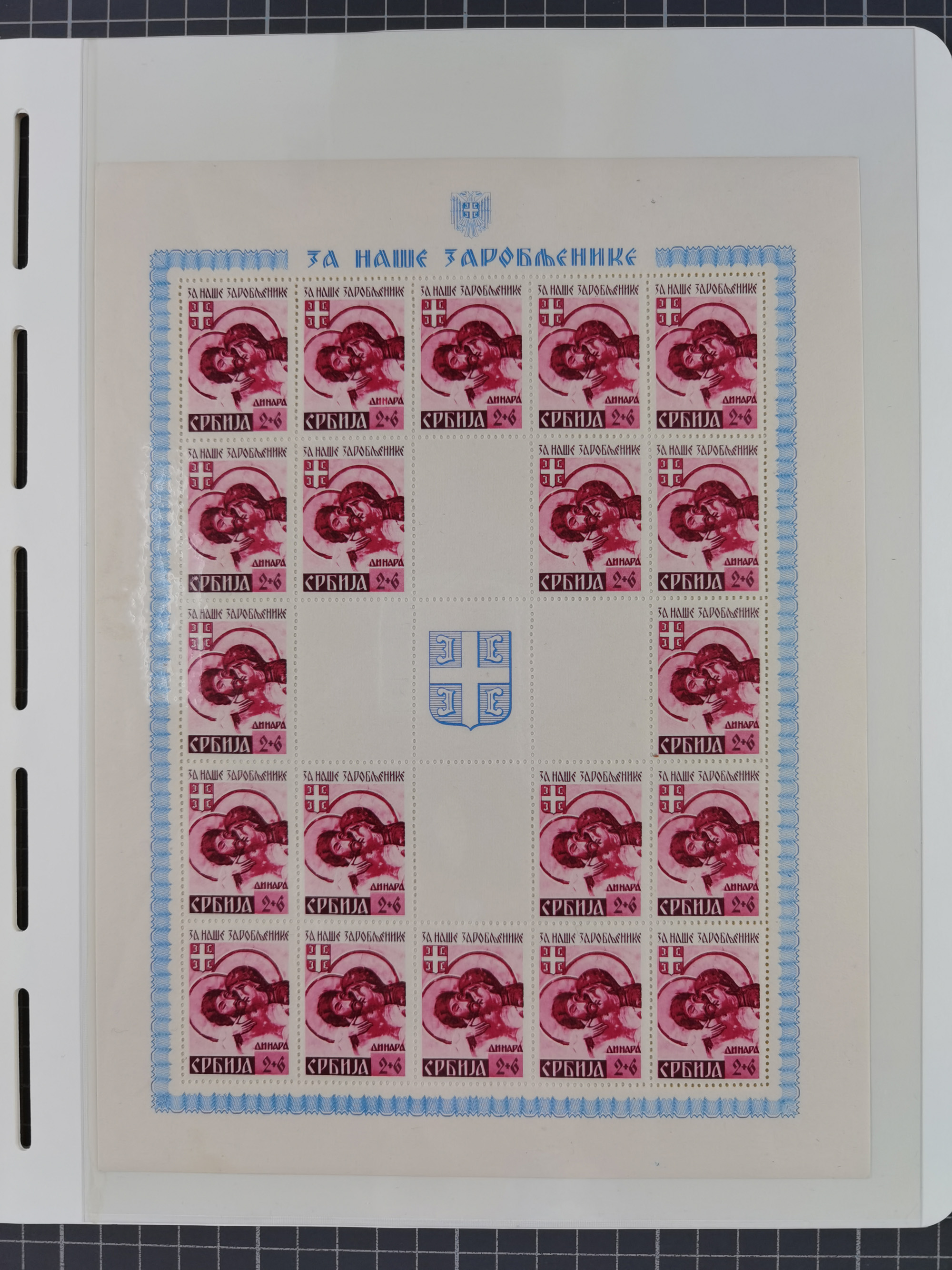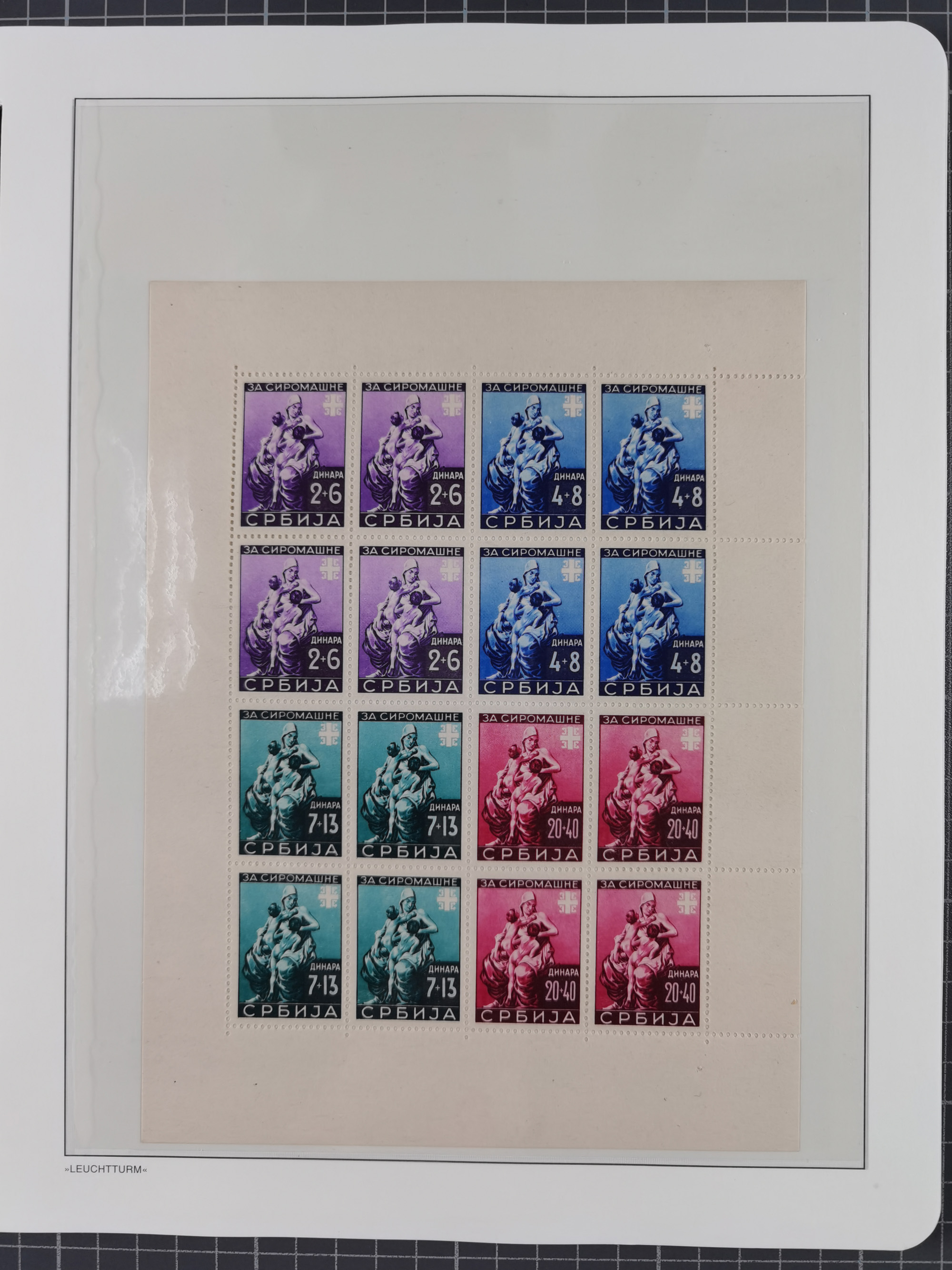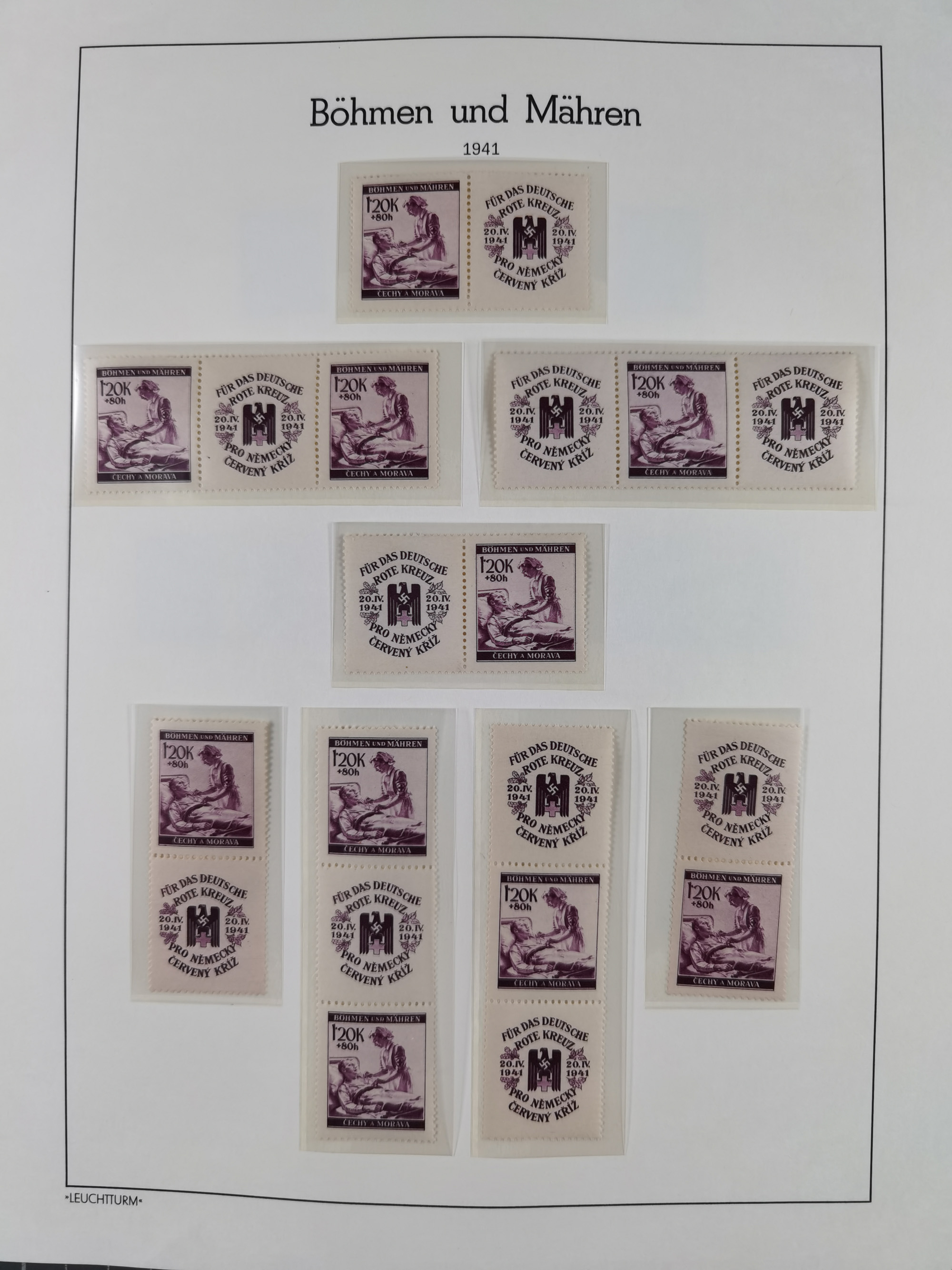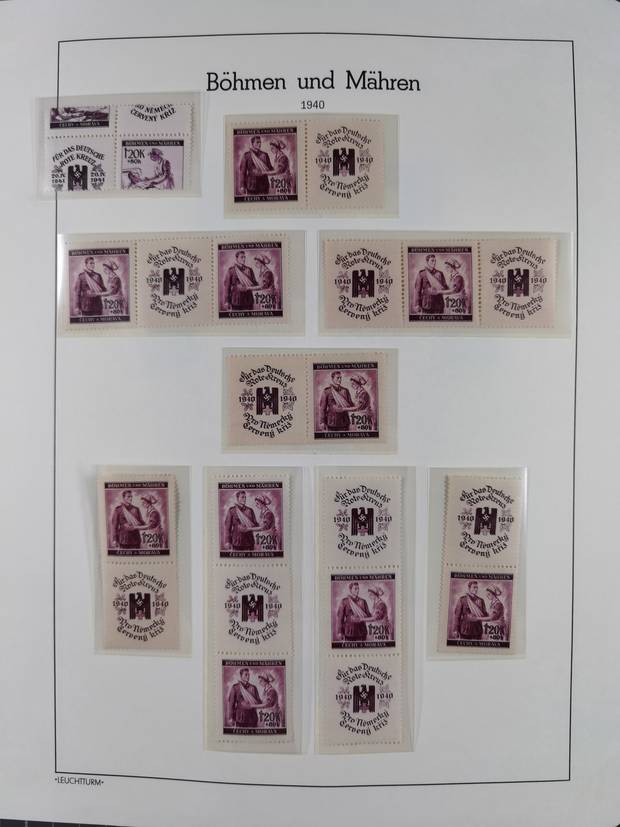 1940, Rotes Kreuz 1,20 K. dunkelrosa mit Zierfeld rechts, Farbprobedruck im Kleinbogenformat, sauber in Passepartout montiert, rückseitig auf dem Passpartout Nummerierung “2” sowie Bleistiftnotiz “…Erhalten von Postrat Hroch.”, die linke und senkrechte Zähnung etwas ausgebrochen, sonst tadellos, sehr attraktiv und sehr selten, Fotoattest Pfeiffer BPP (2019)