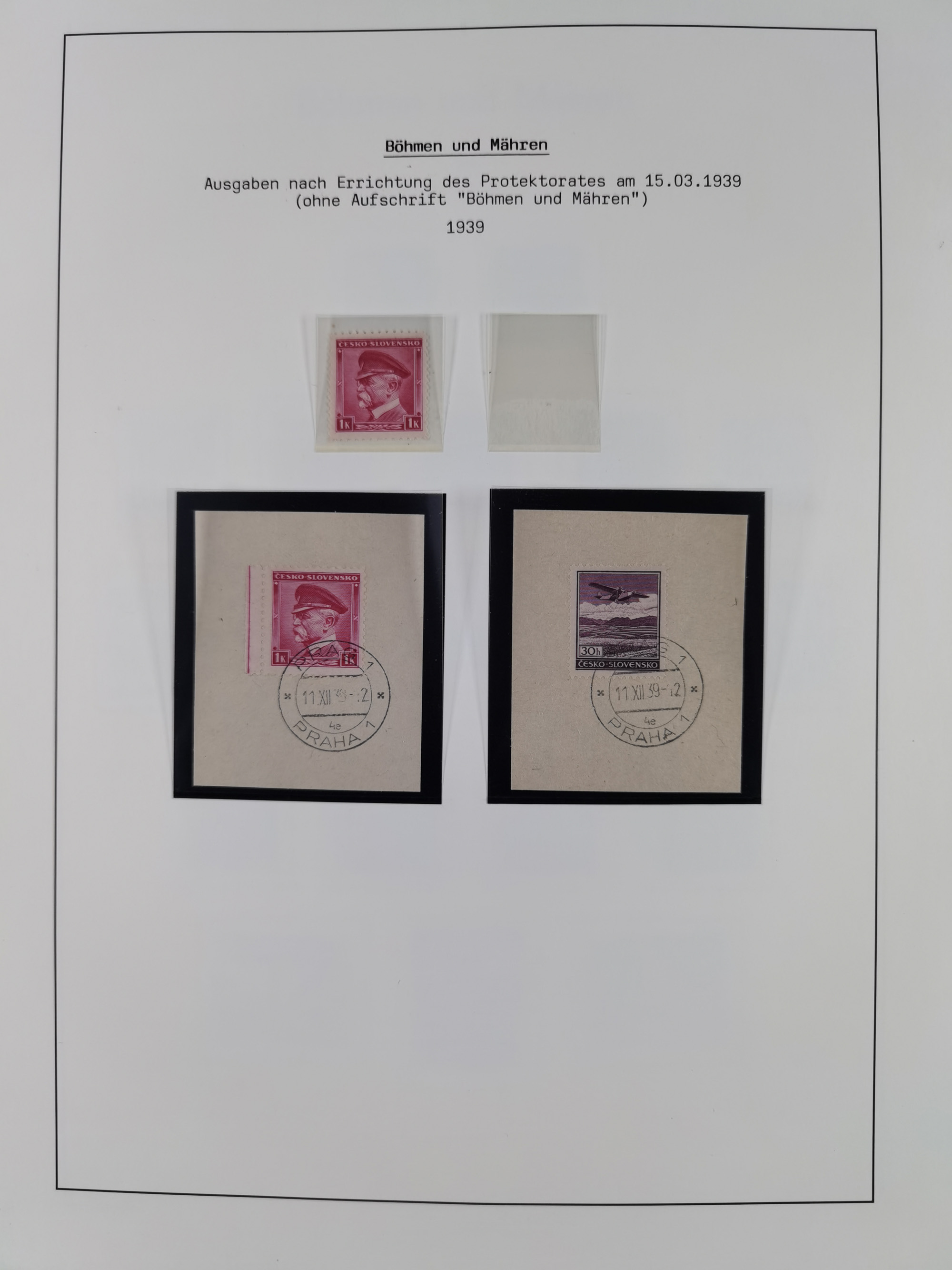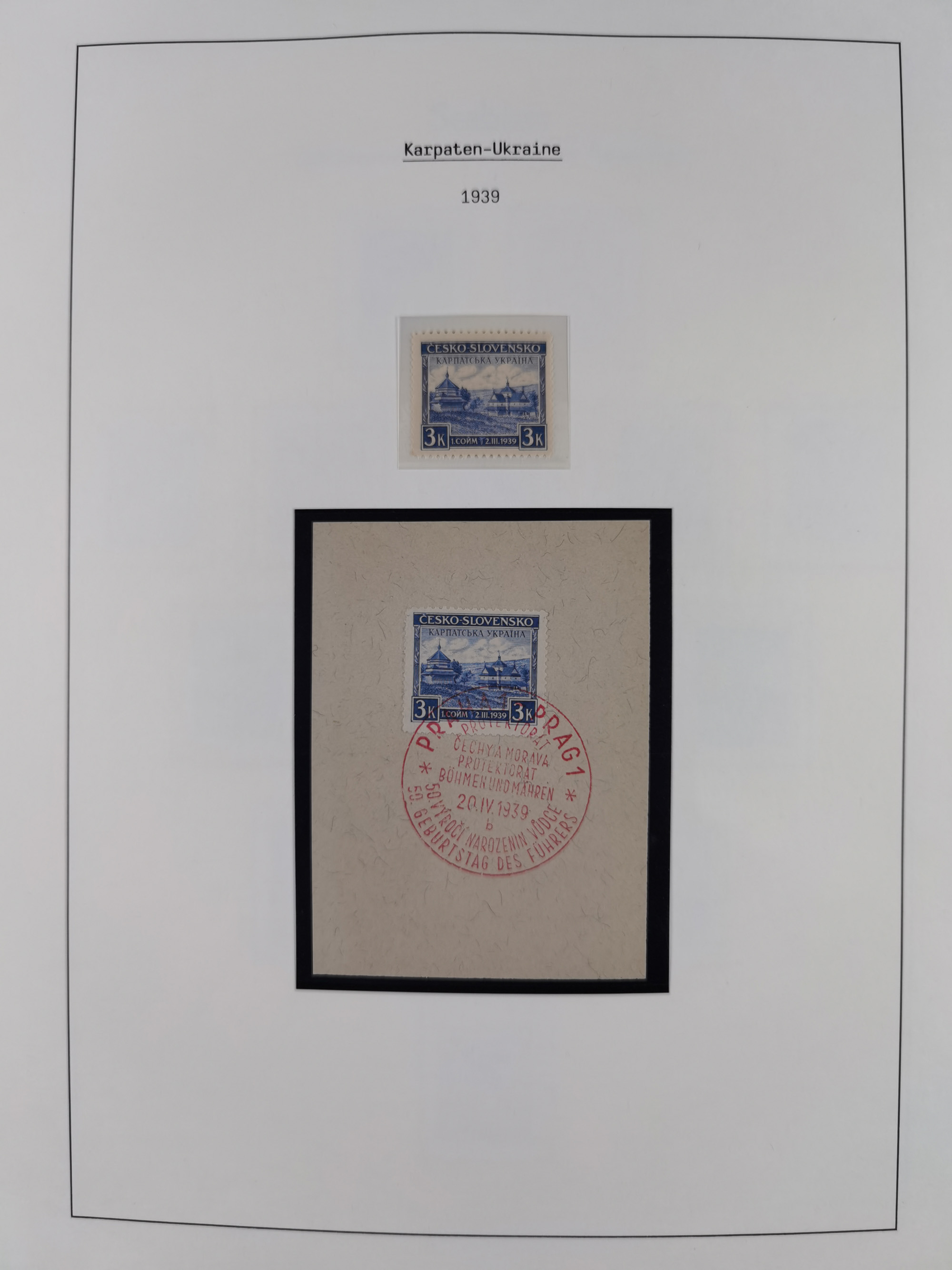 1939, Prag 1K. schwärzlichkarmin, Einzelabzug auf ungummiertem Papier (45x70mm), in von der endgültigen Ausgabe etwas abweichendem Format sowie breiterem Landesnamen “CECHY A MORAVA”, selten, Fotoattest Brunel (2019)
