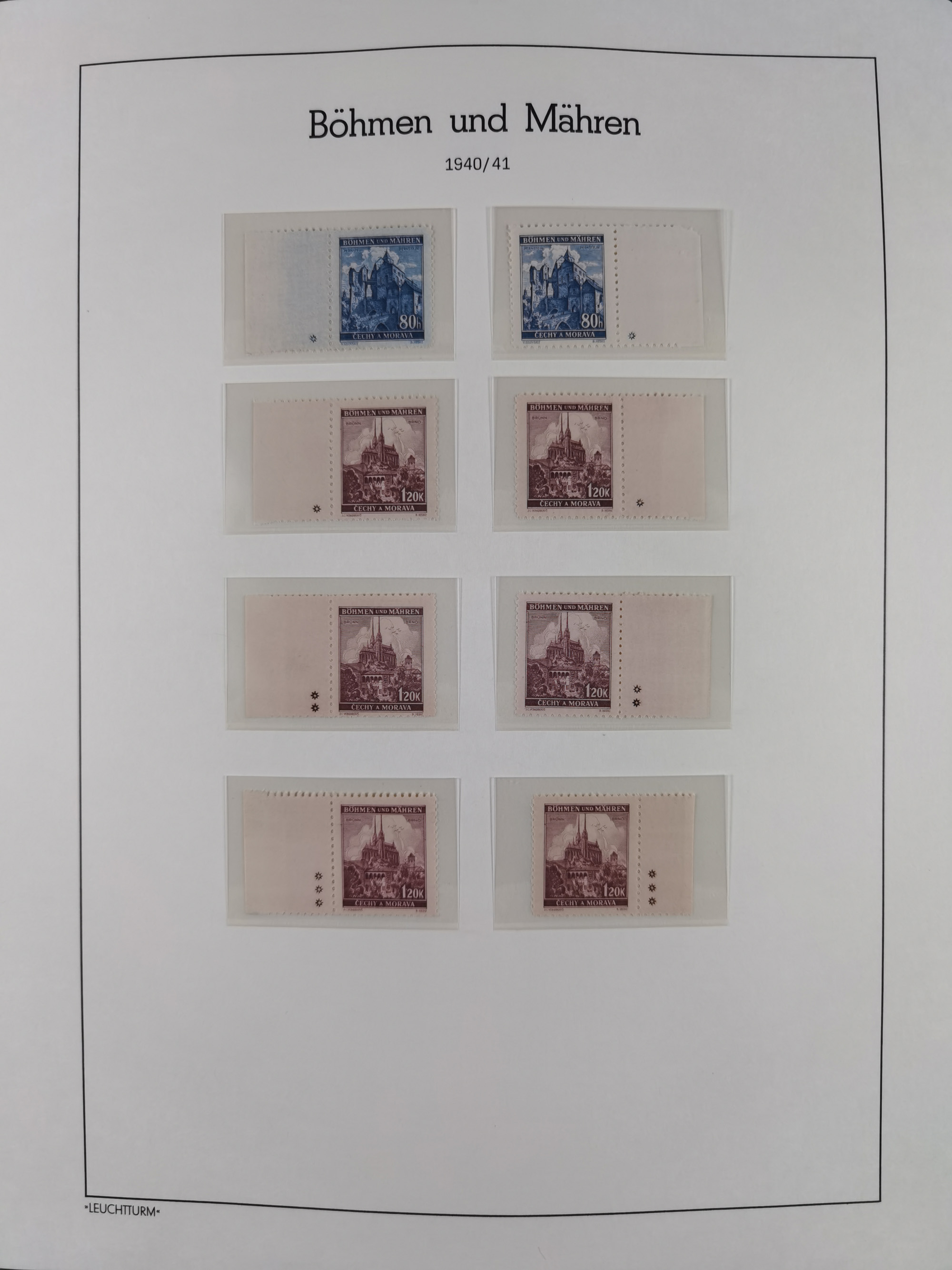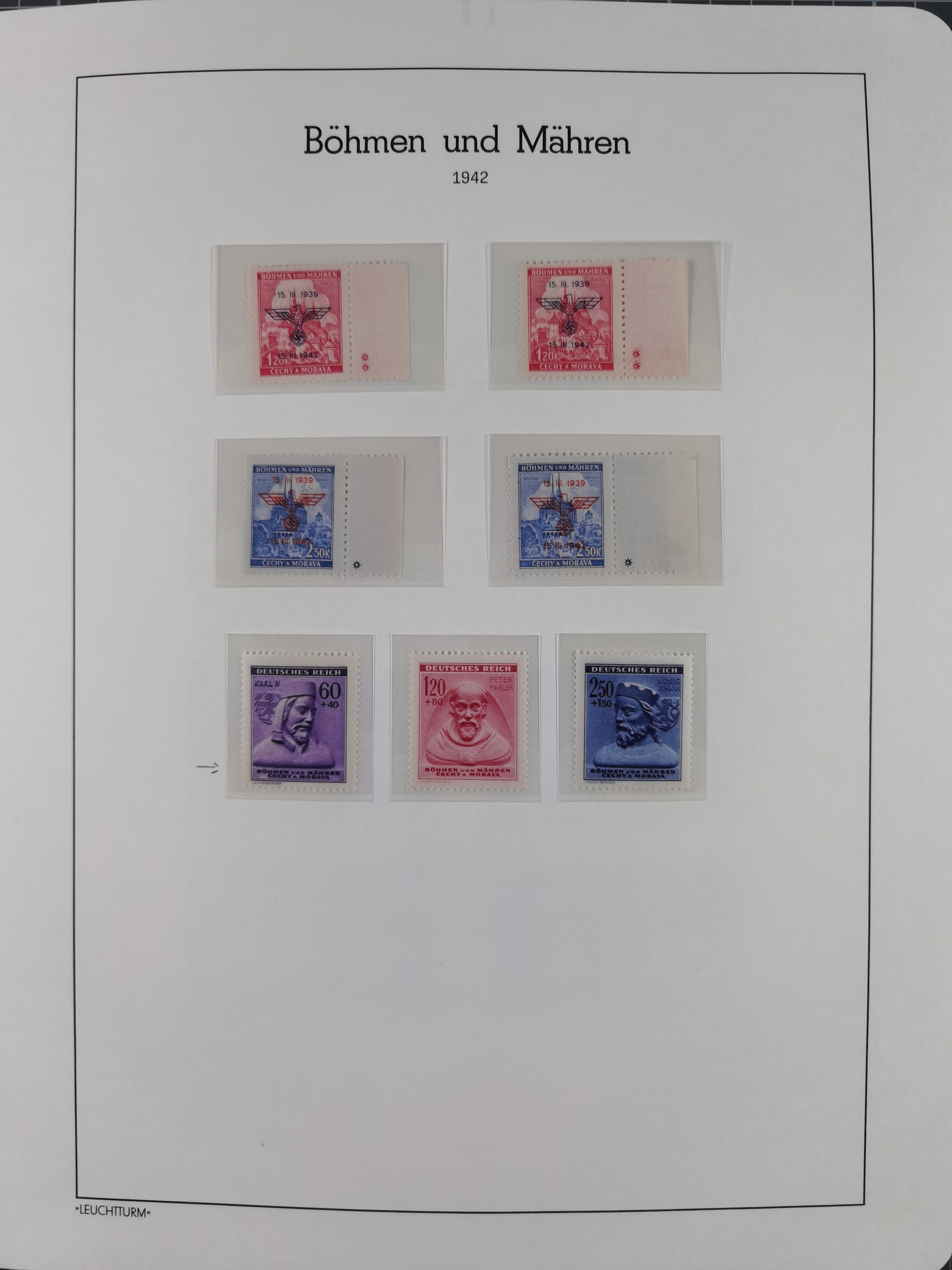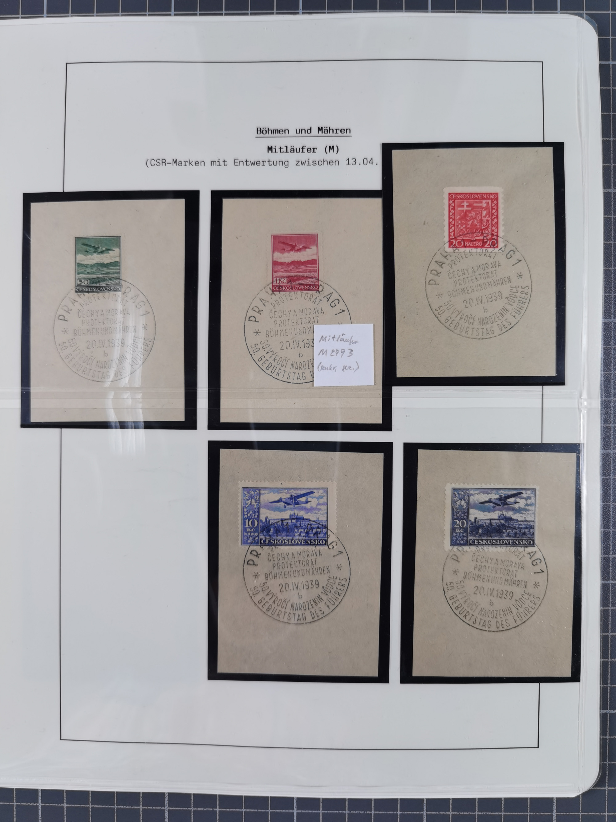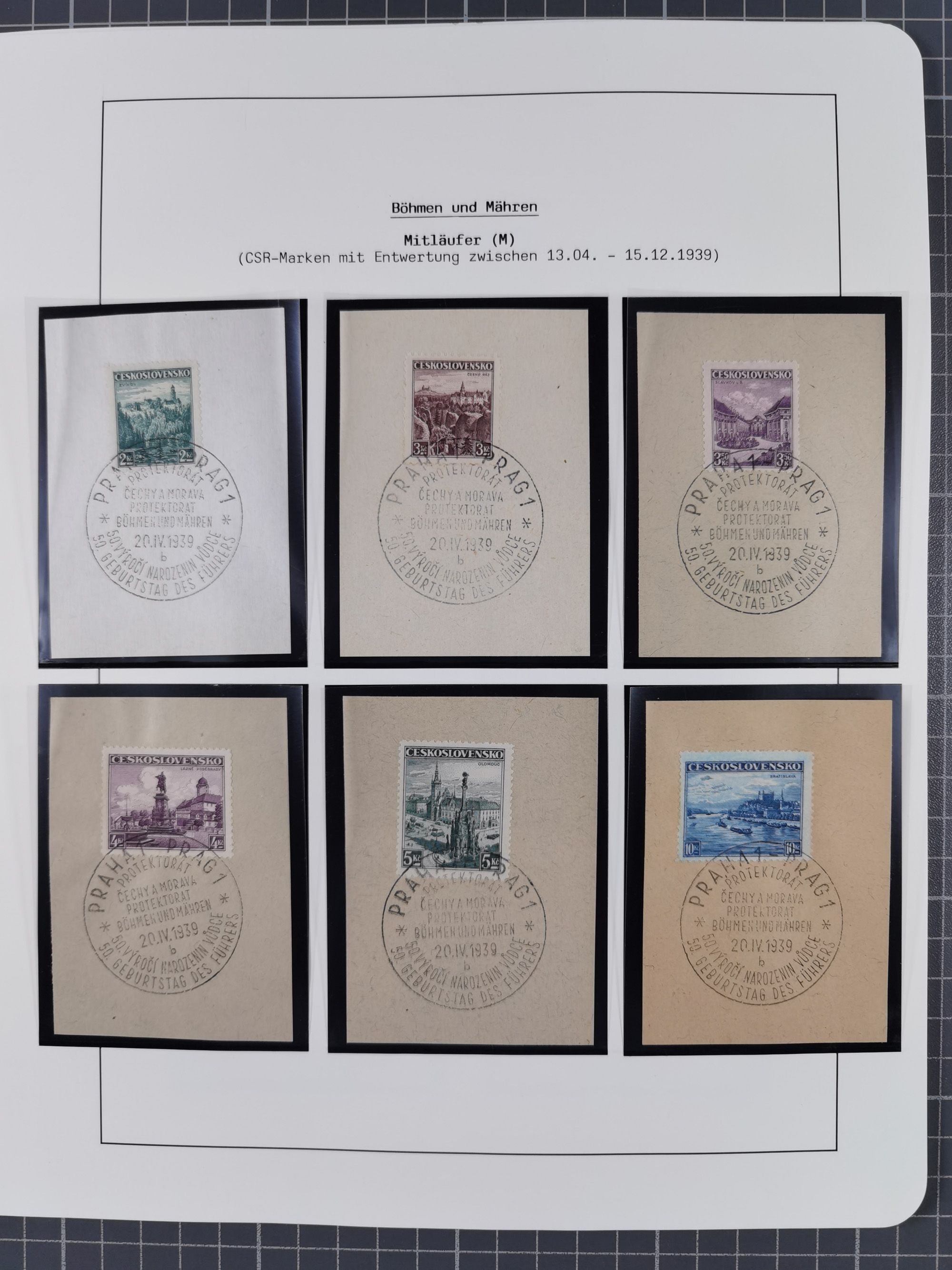 1939/45, interessante Partie, weißer Kärtchen mit Original-Unterschrift des Entwerfers wie Prof. Alois Schaumann, Karel Vik, Bohumil Heinz, Jan Vondrous, Vladimir Silovsky, Prof. Josef Sejpka, Jan Goldschmied und Alfred Erhardt, die Marken meist postfrisch, insgesamt 36 Stück, sehr interessant