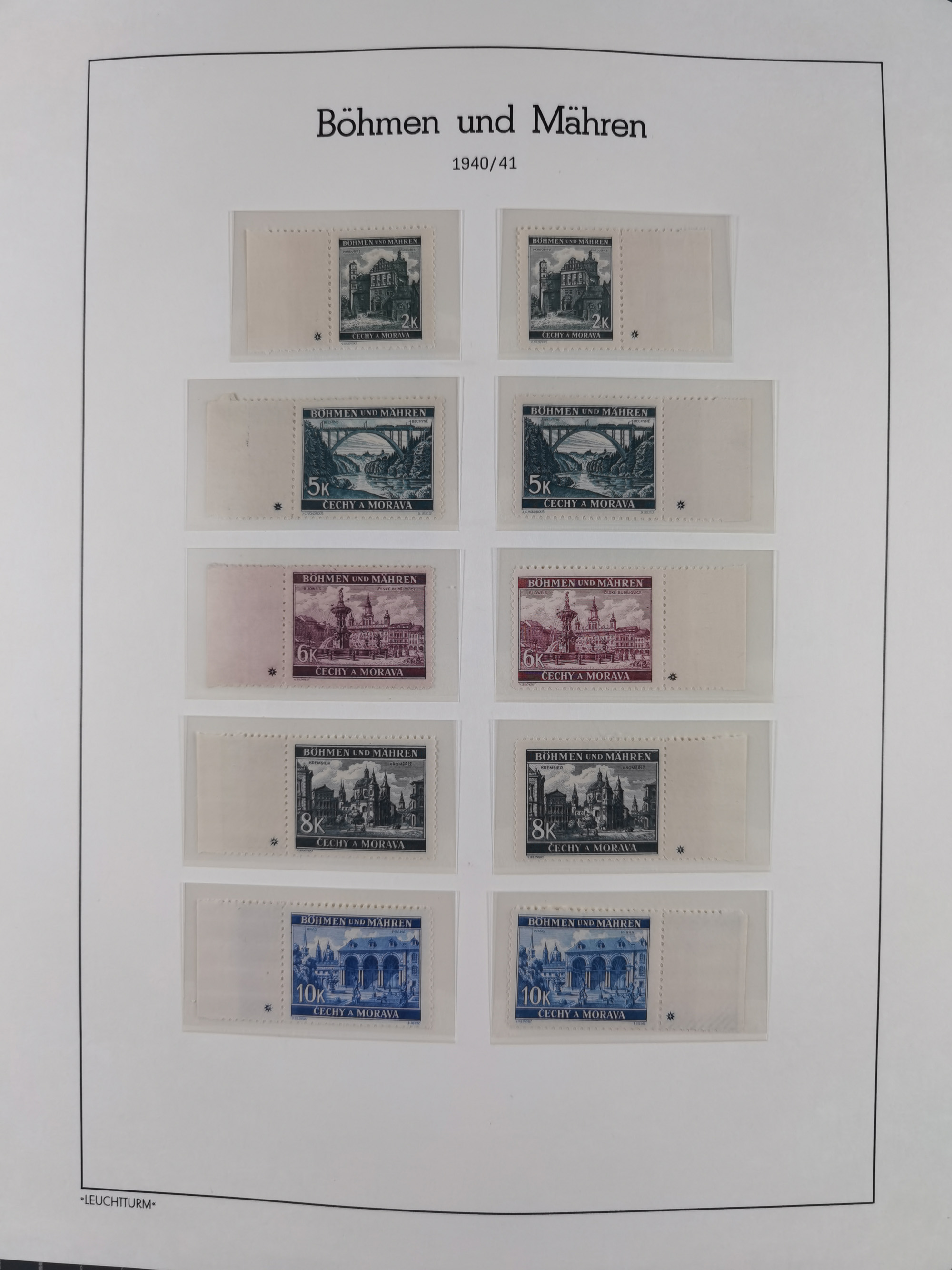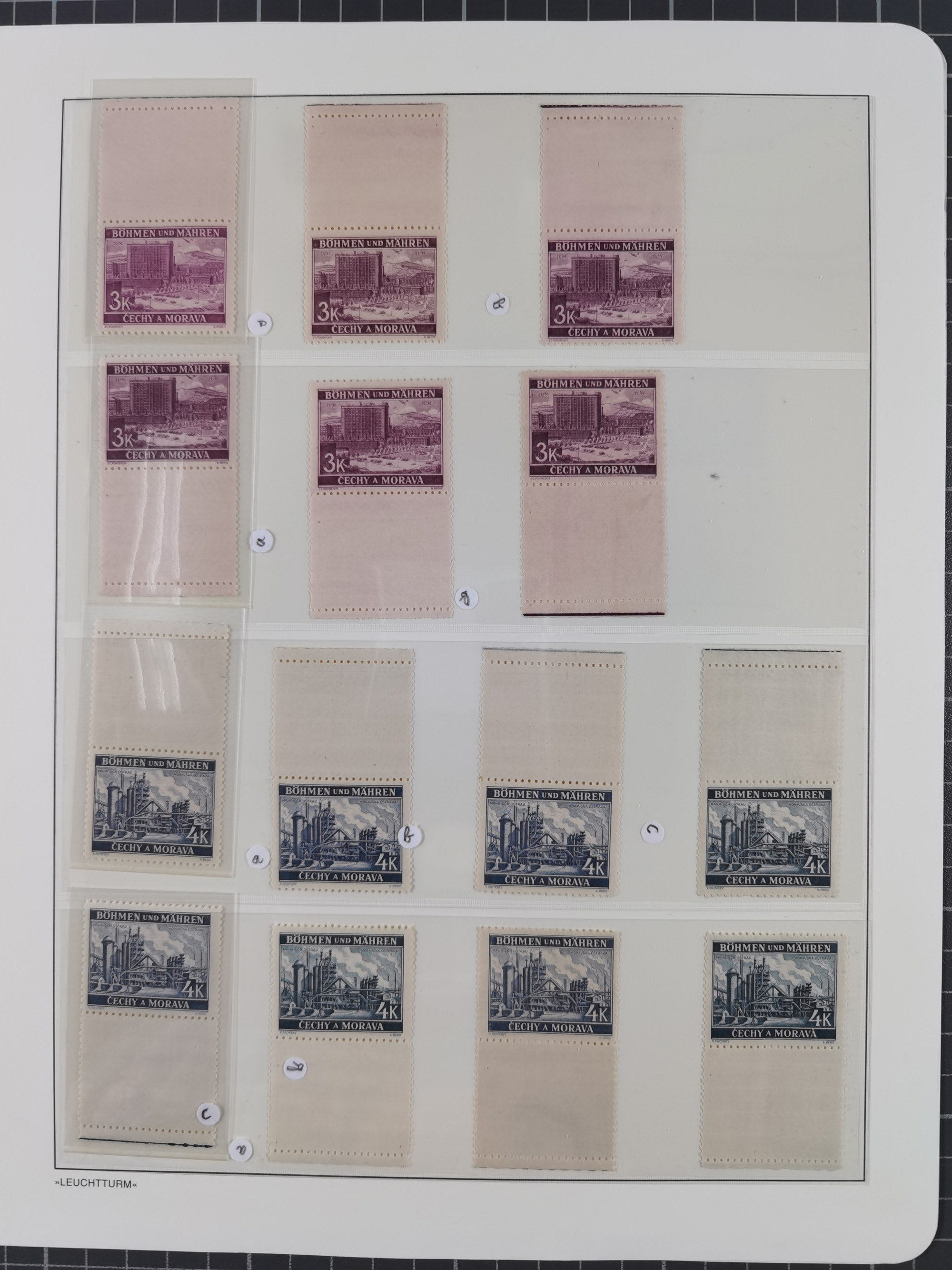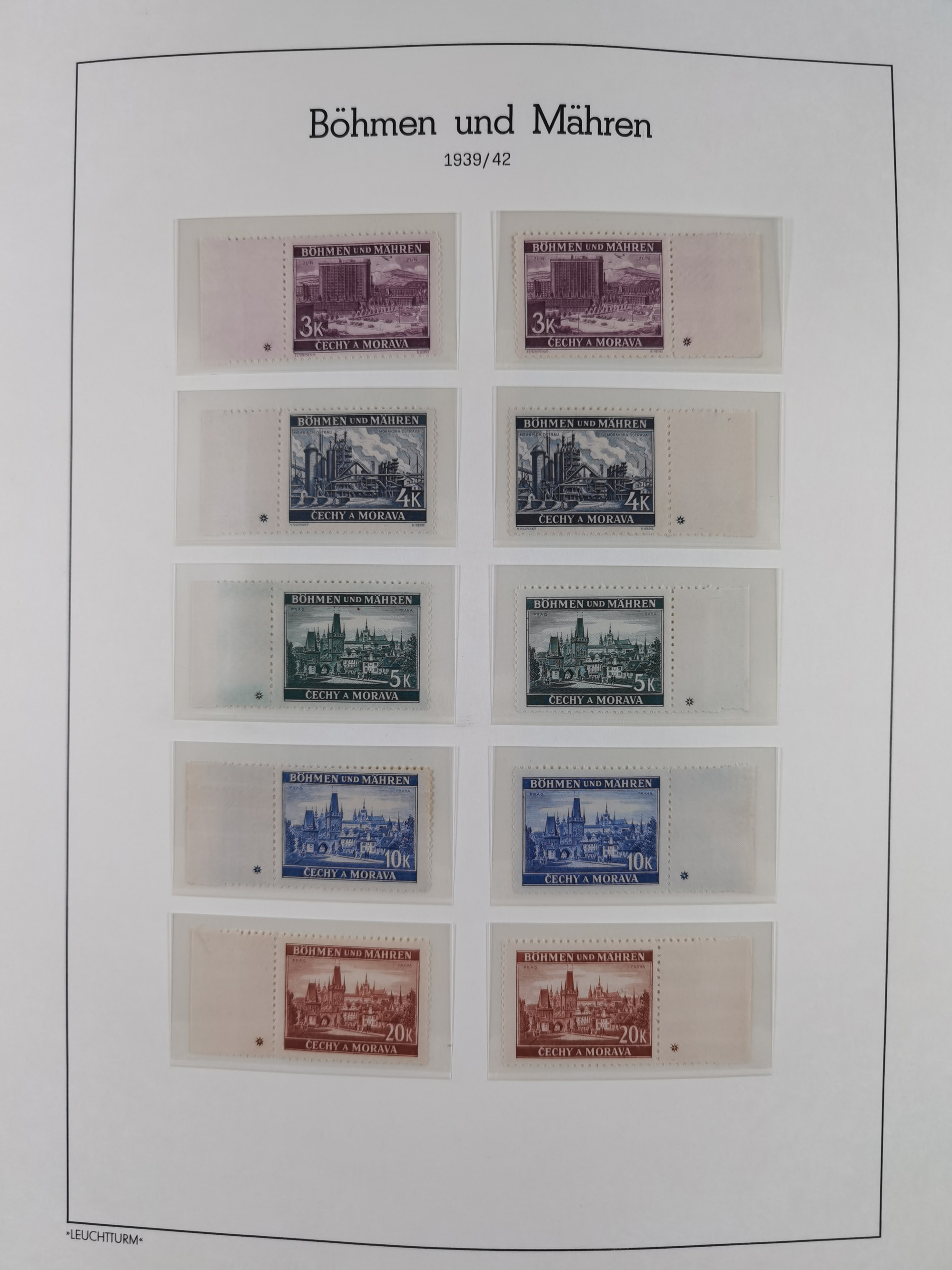 1939/45, interessante Partie, weißer Kärtchen mit Original-Unterschrift des Entwerfers wie Prof. Alois Schaumann, Karel Vik, Bohumil Heinz, Jan Vondrous, Vladimir Silovsky, Prof. Josef Sejpka, Jan Goldschmied und Alfred Erhardt, die Marken meist postfrisch, insgesamt 36 Stück, sehr interessant