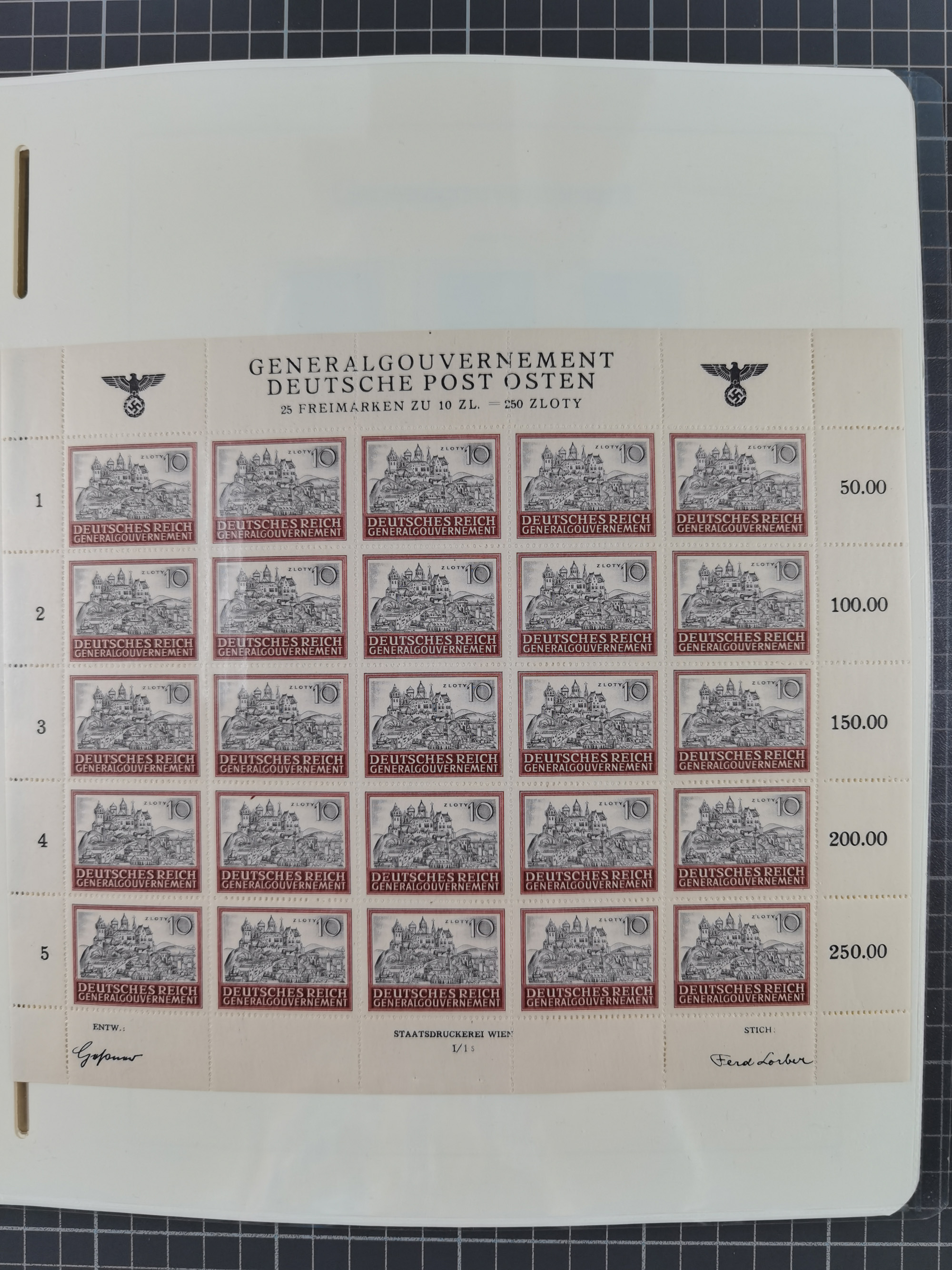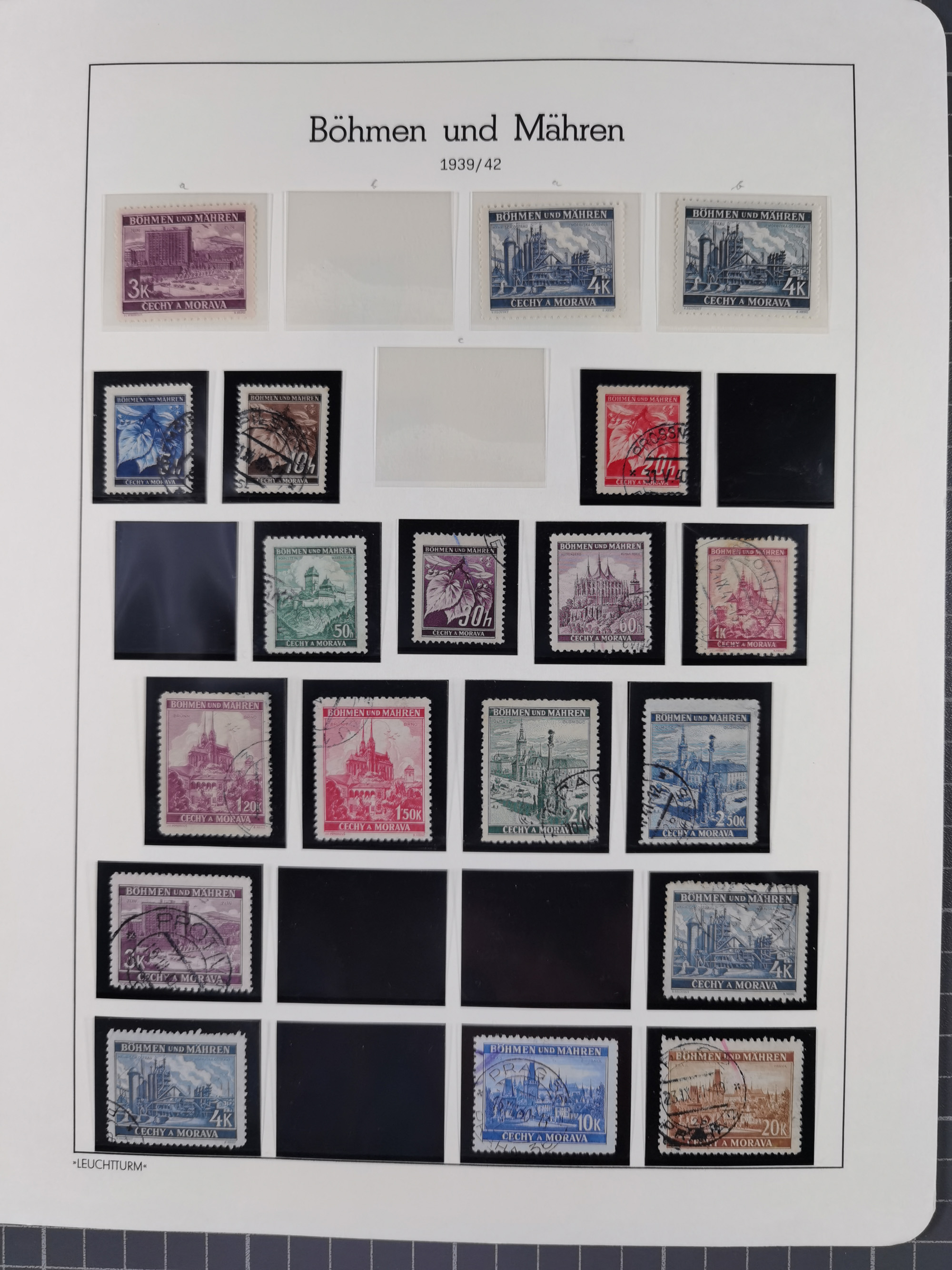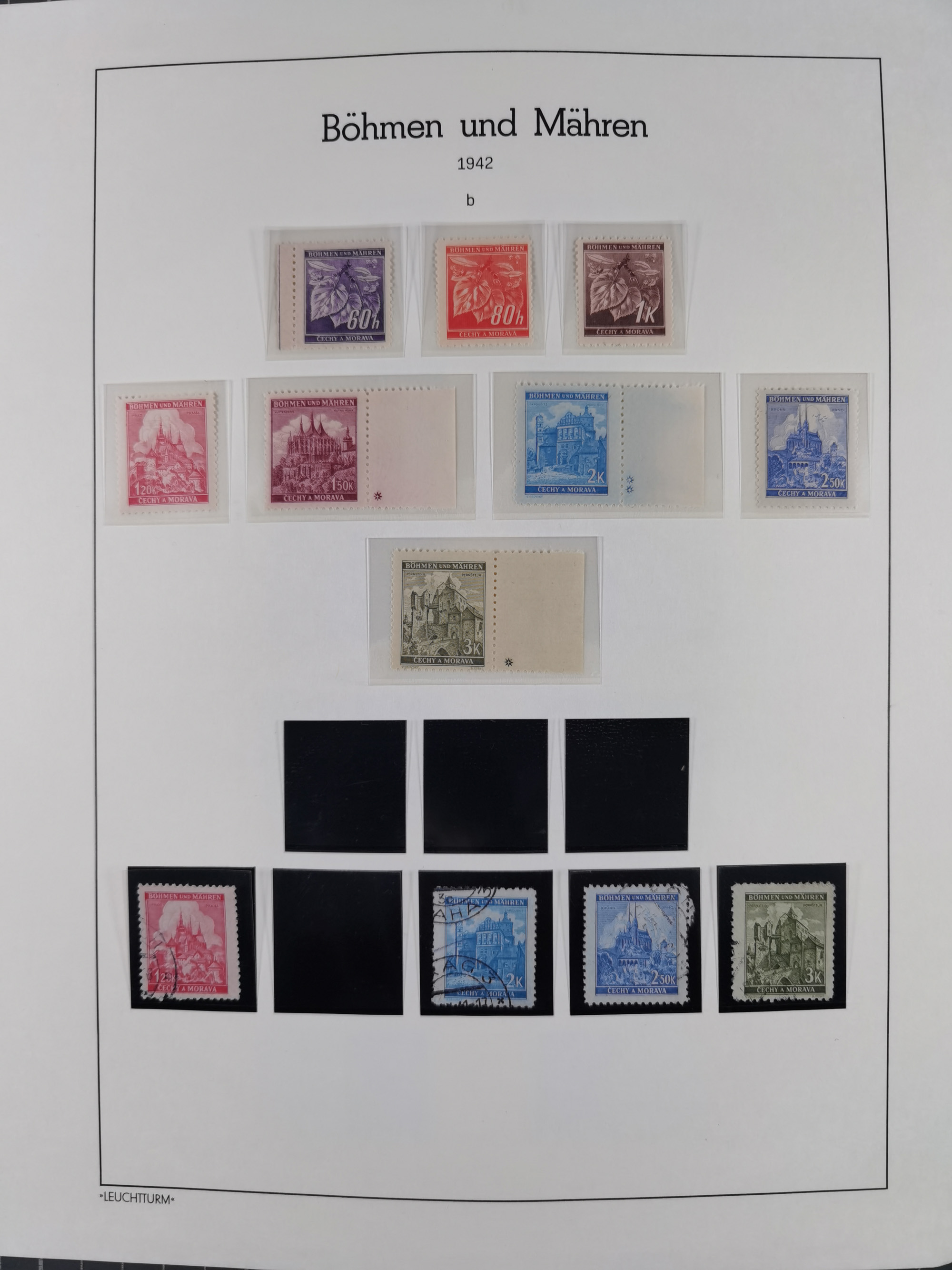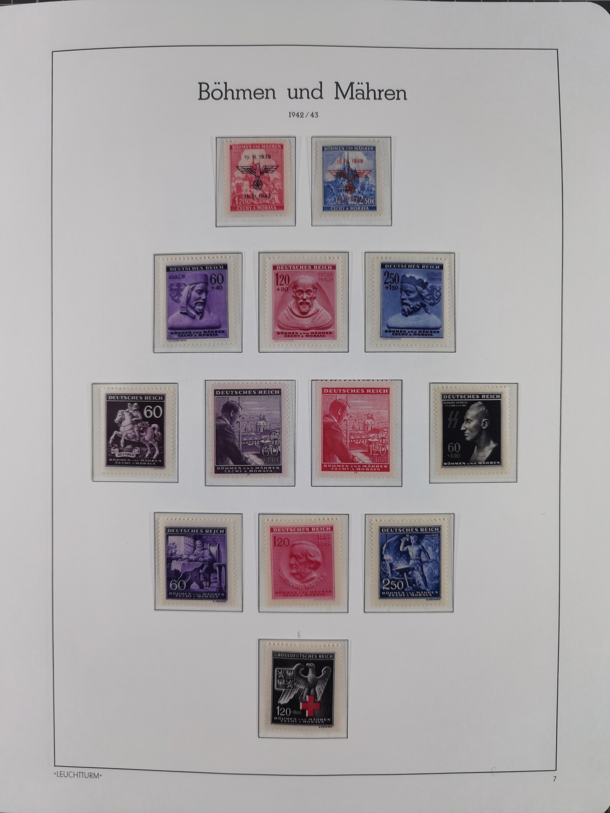 1939/45, interessante Partie, weißer Kärtchen mit Original-Unterschrift des Entwerfers wie Prof. Alois Schaumann, Karel Vik, Bohumil Heinz, Jan Vondrous, Vladimir Silovsky, Prof. Josef Sejpka, Jan Goldschmied und Alfred Erhardt, die Marken meist postfrisch, insgesamt 36 Stück, sehr interessant