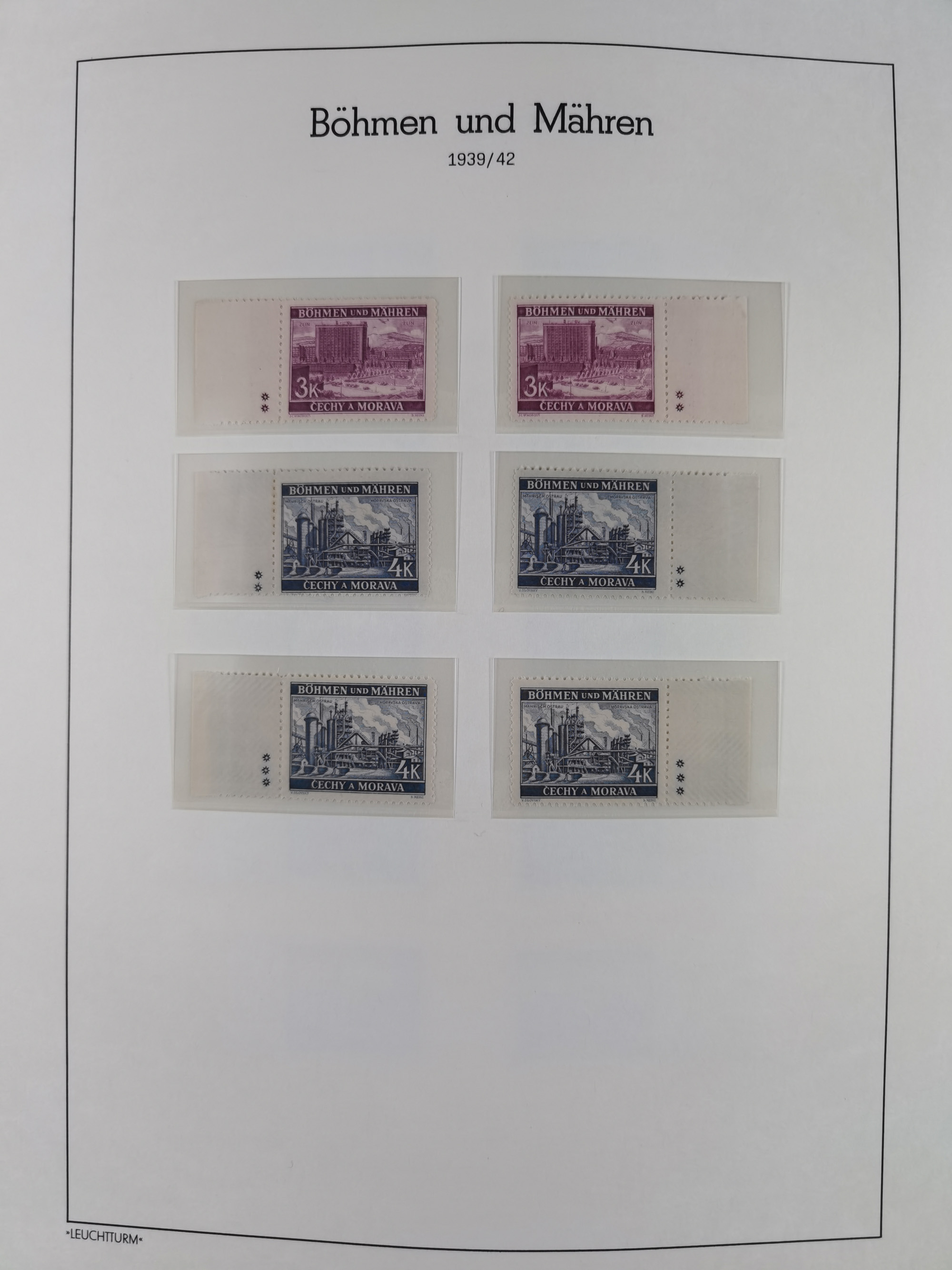 1939, Industriewerke Mährisch-Ostrau 4K. schwärzlichblau, Einzelabzug in von der endgültigen Ausgabe etwas abweichendem Format auf ungummiertem Papier (78x51mm), die Schriftleisten sind nicht vollständig ausgearbeitet und weisen einen helleren Farbton auf, tadellos, selten, Fotoattest Brunel (2019)