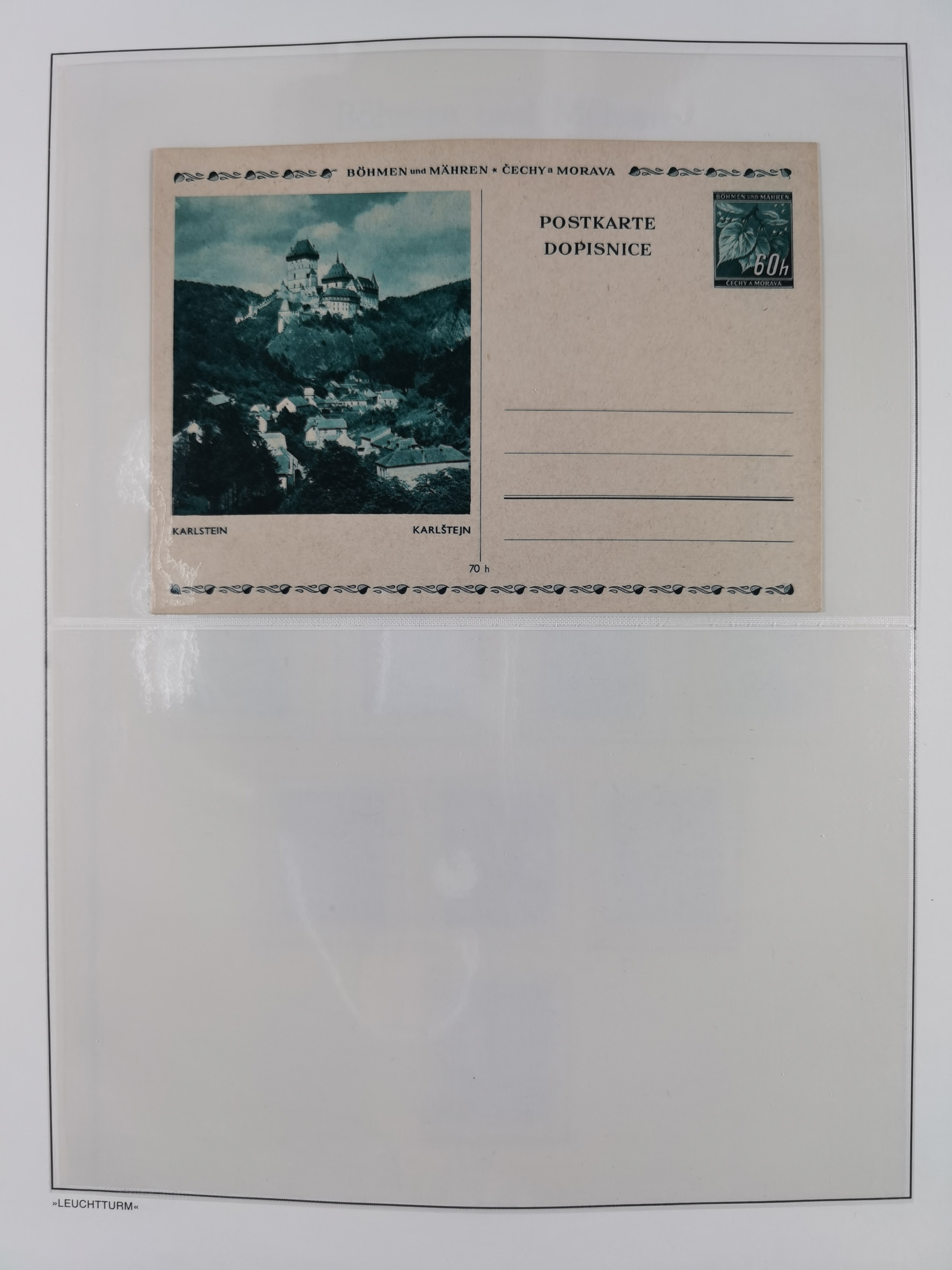 1939, Prag 1K. lilabraun, Einzelabzug auf ungummiertem Papier (46x64mm), in von der endgültigen Ausgabe etwas abweichendem Format sowie breiterem Landesnamen “CECHY A MORAVA”, die Schriftleisten sind nicht vollständig ausgearbeitet und weisen einen helleren Farbton auf, selten, Fotoattest Brunel (2019)