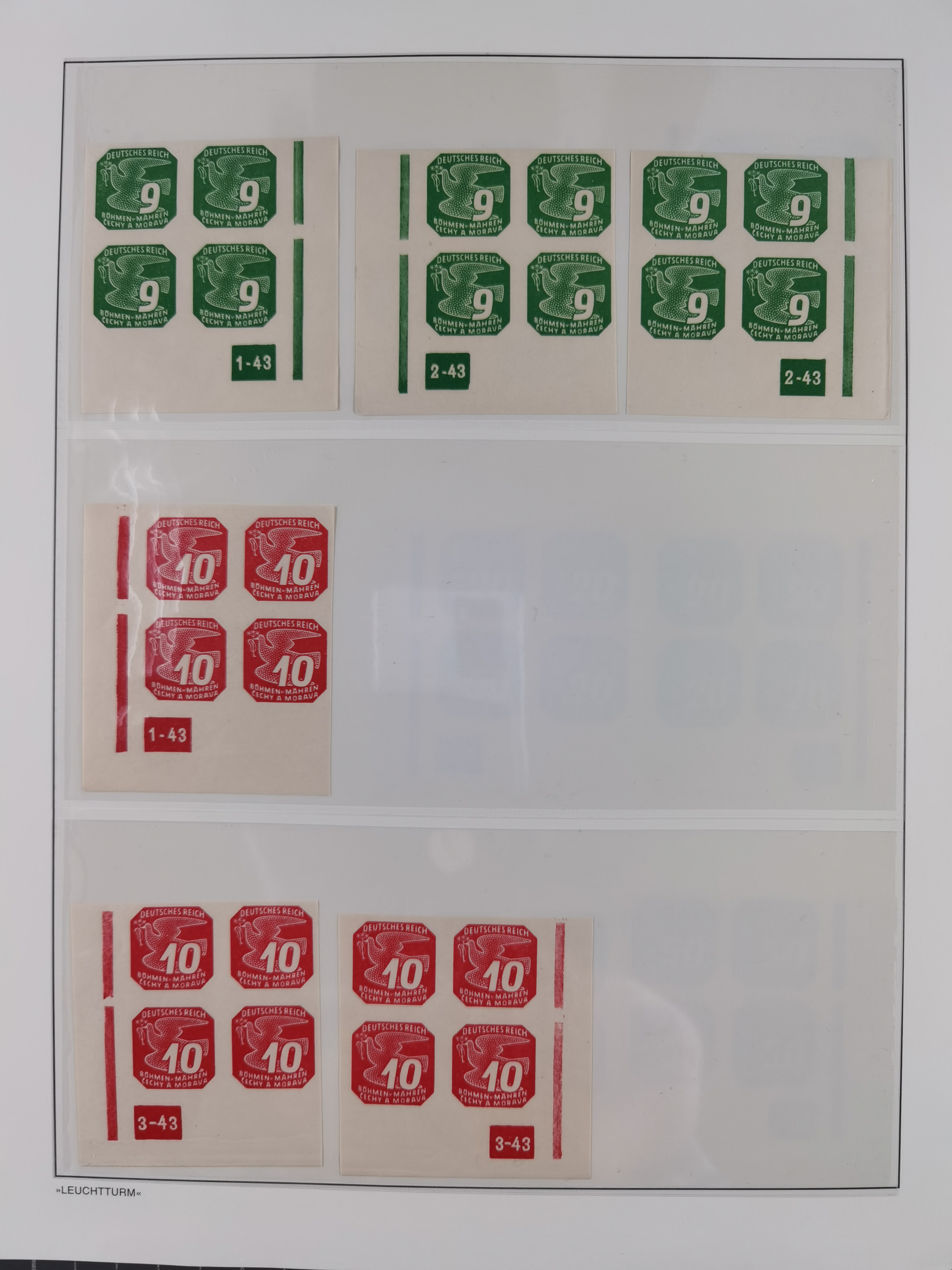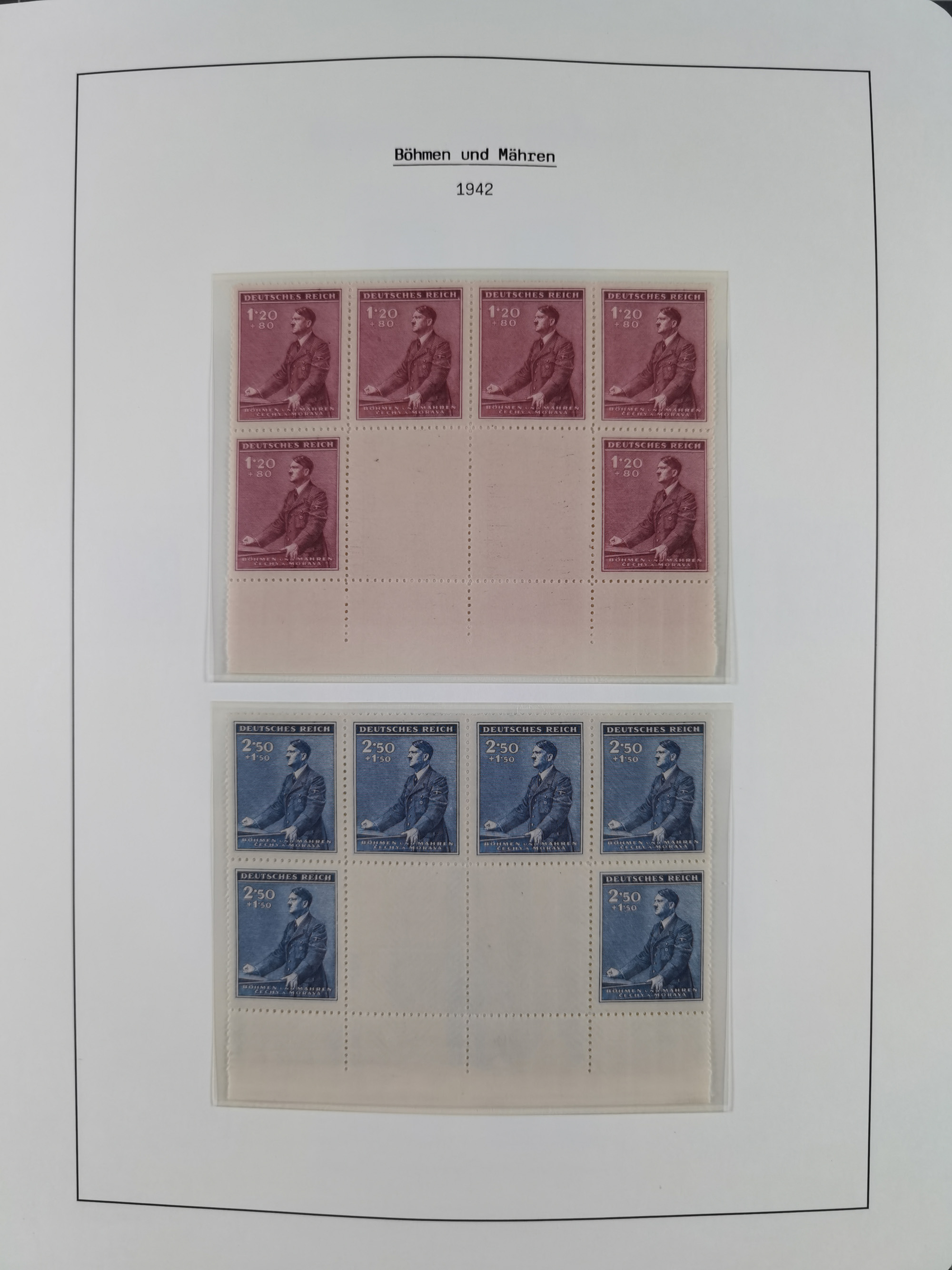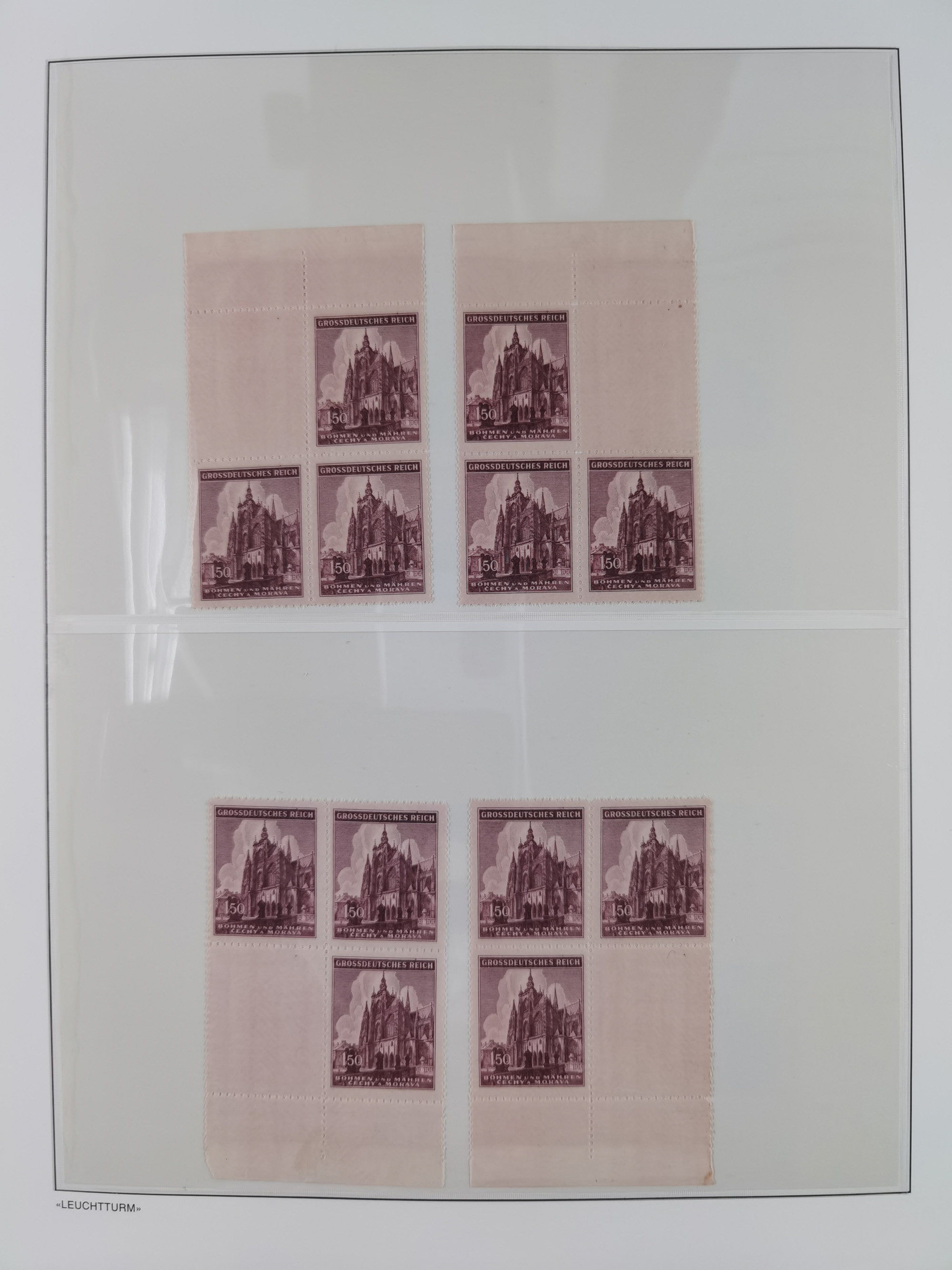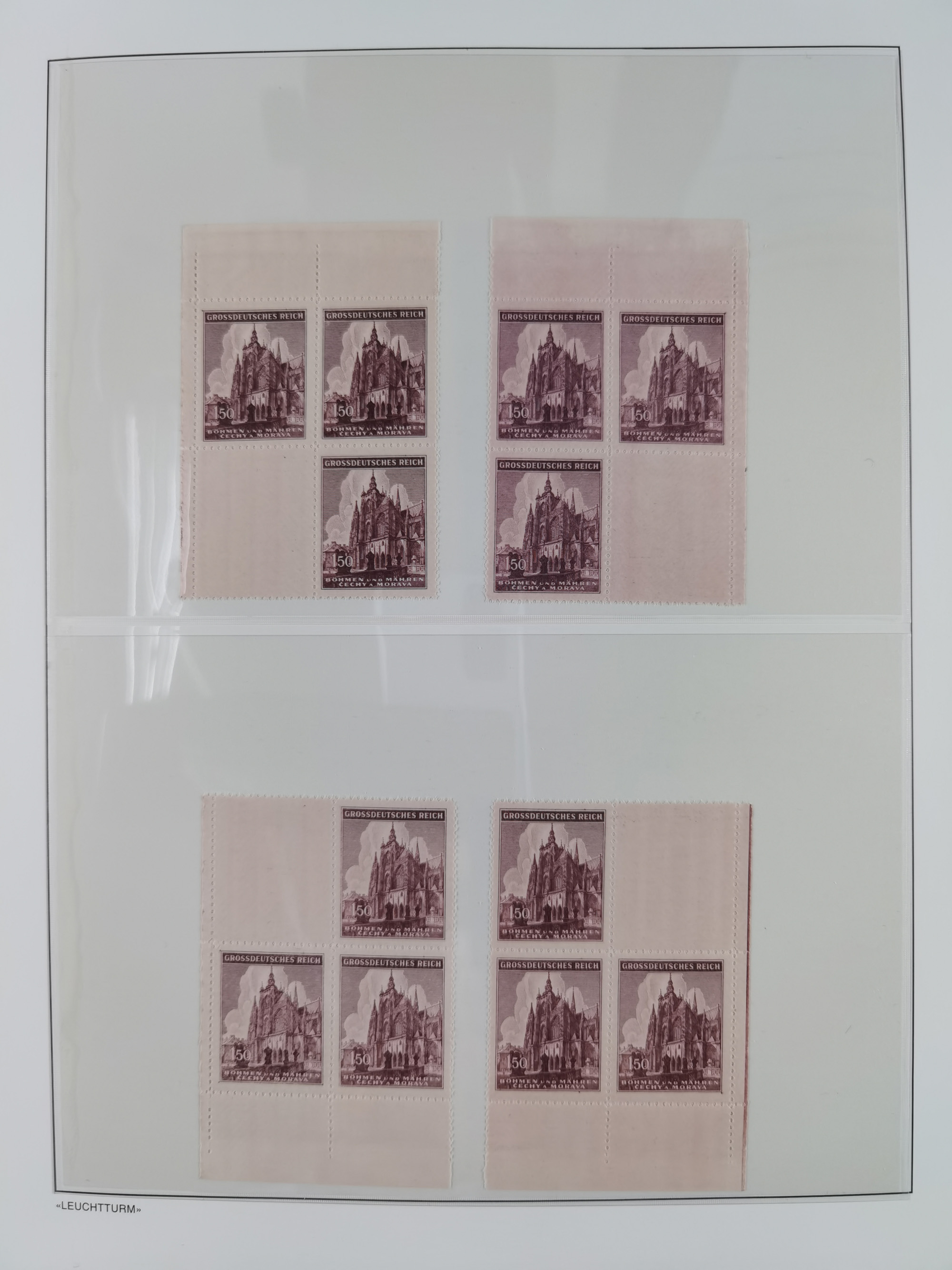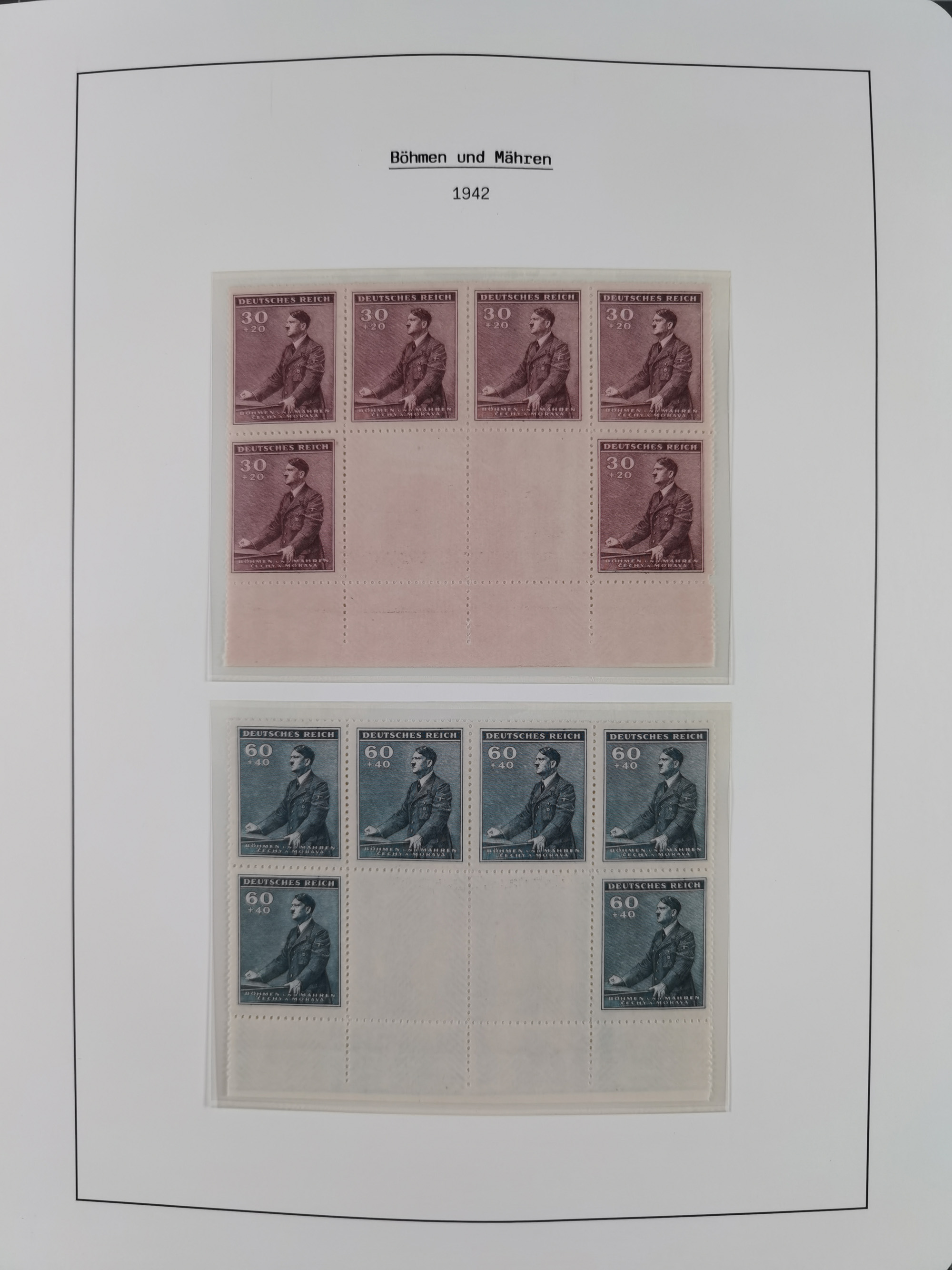1939/45, sehr reichhaltige, postfrische Sammlung im dicken Leuchtturm-Album mit vielen Besonderheiten, dabei Eckrandstücke mit Plattennummer sowie Marken mit anhängendem Leerfeld, große Stückzahl an Viererblocks mit Plattennummern bei den Zeitungsmarken und Dienstmarken; bei den Portomarken Eckrandstücke mit Plattennummer und waagerechte Zwischenstegpaare mit Plattennummer, viel ex Mi.-Nr. 1-19, zu guter Letzt Zulassungsmarke Theresienstadt mit Fotoattest Brunel, alles in sehr schöner Erhaltung