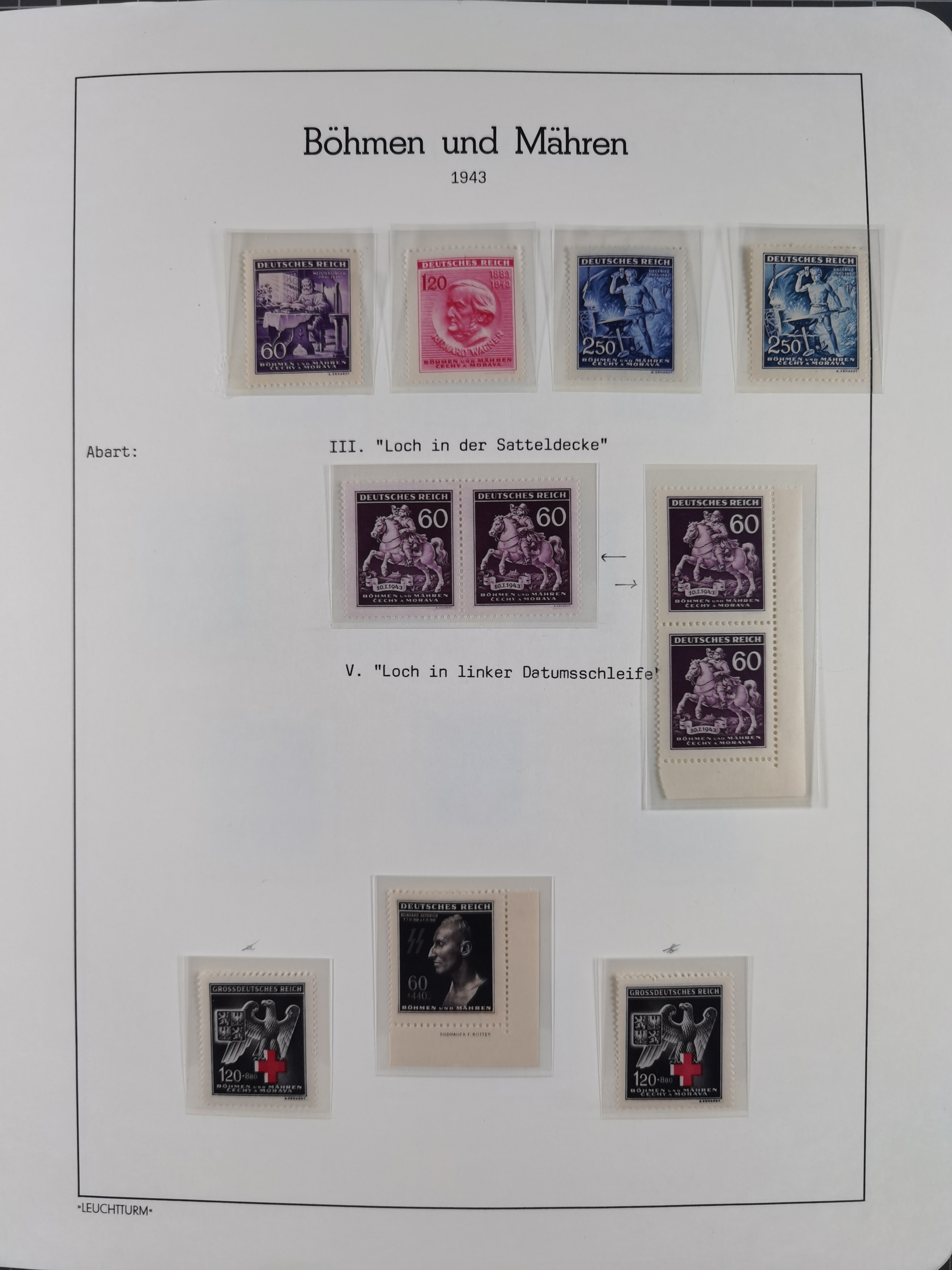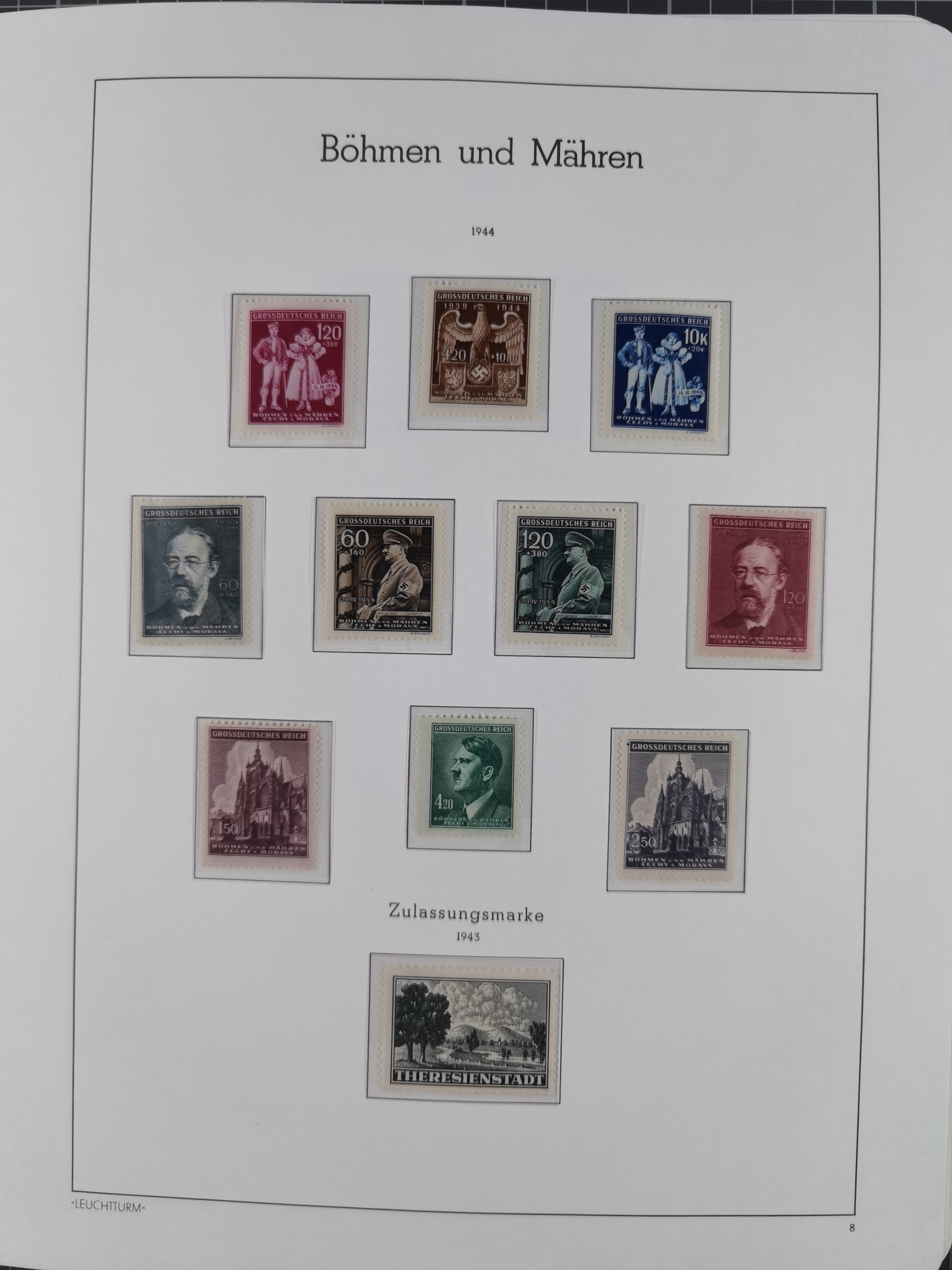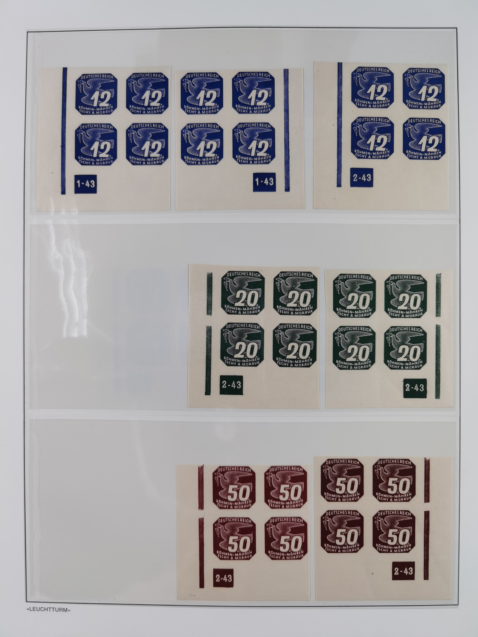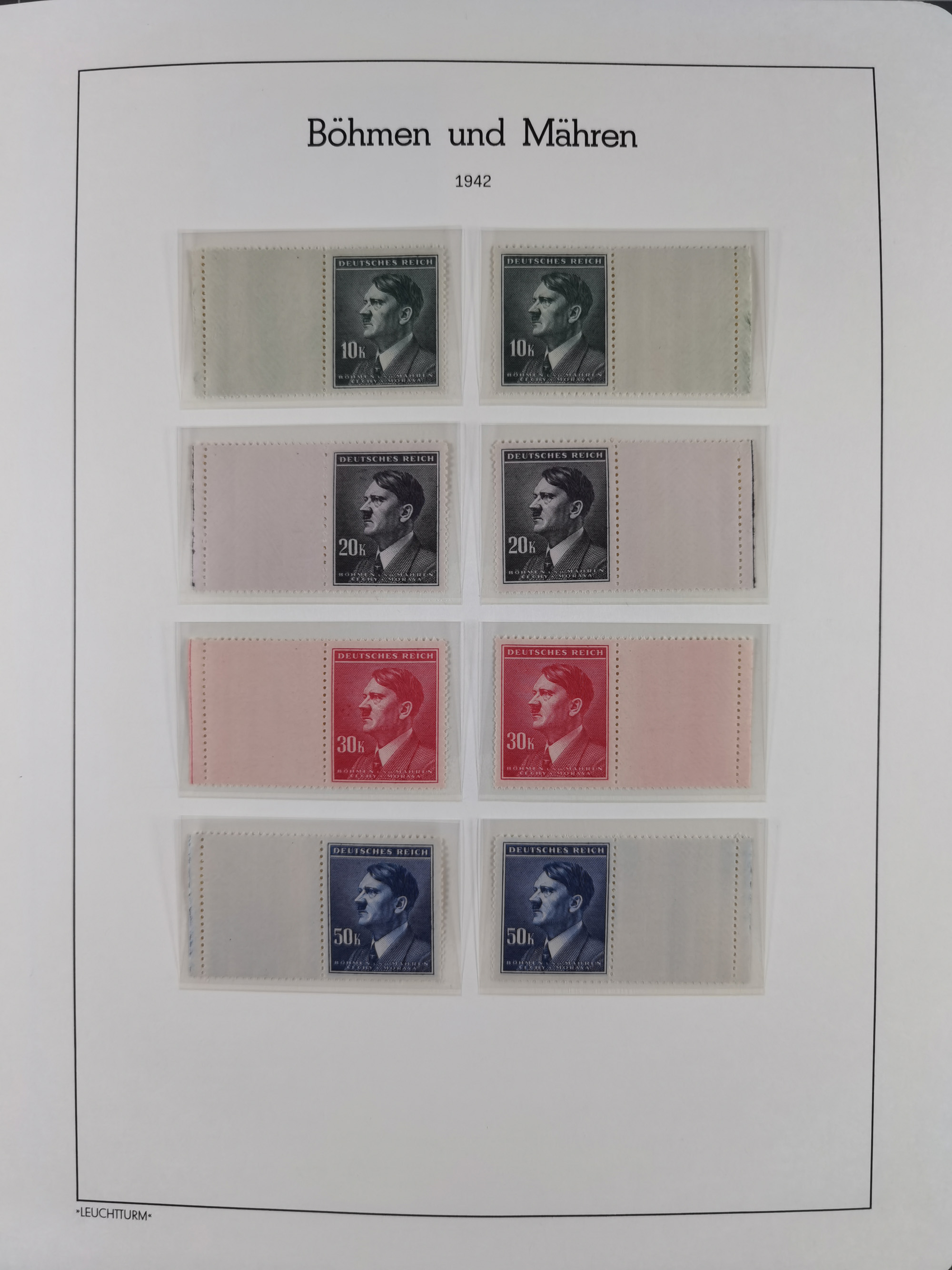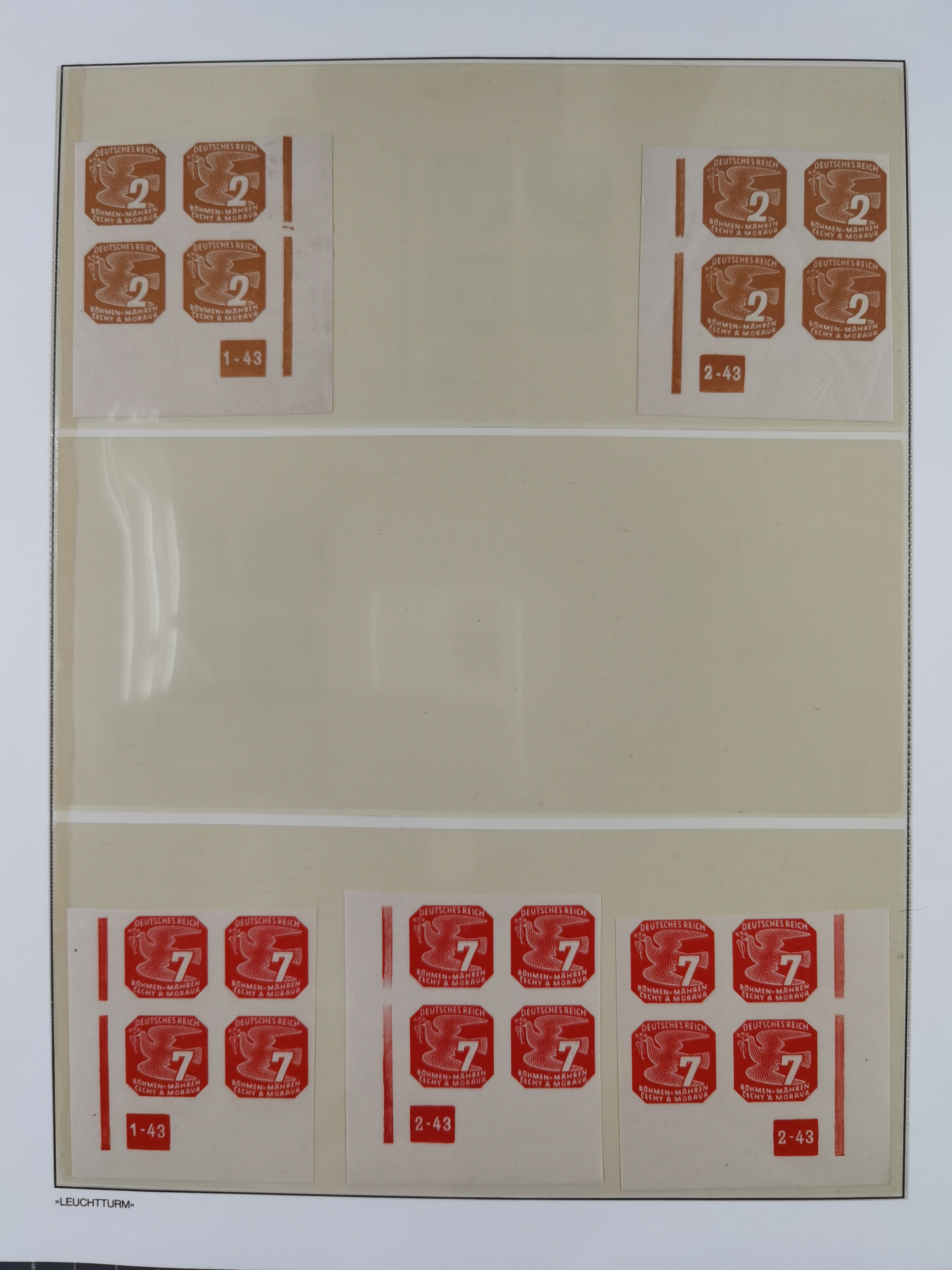 1939/45, sehr reichhaltige, postfrische Sammlung im dicken Leuchtturm-Album mit vielen Besonderheiten, dabei Eckrandstücke mit Plattennummer sowie Marken mit anhängendem Leerfeld, große Stückzahl an Viererblocks mit Plattennummern bei den Zeitungsmarken und Dienstmarken; bei den Portomarken Eckrandstücke mit Plattennummer und waagerechte Zwischenstegpaare mit Plattennummer, viel ex Mi.-Nr. 1-19, zu guter Letzt Zulassungsmarke Theresienstadt mit Fotoattest Brunel, alles in sehr schöner Erhaltung