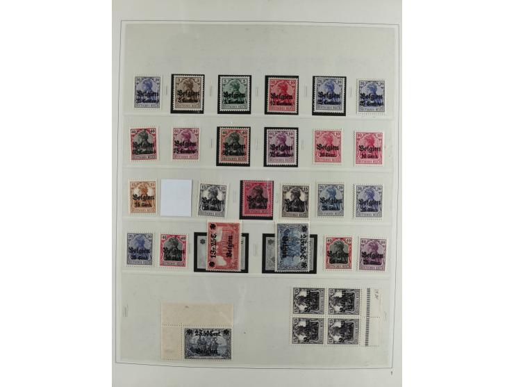 1914/18, postfrische und ungebrauchte Sammlung, dabei viele Farben und Aufdruckvariante wie z.B. Belgien Mi.-Nr. 16bII, 24IB, 24IIB, Etappengebiet West Mi.-Nr. 11IA und 11IB, Postgebiet Ober-Ost Mi.-Nr. 12A, Deutsche Post in Polen Mi.-Nr. 13d, Mvi Rumänien Mi.-Nr. 1-3F sowie bessere Porto- Zwangszuschlags- und Fiskalmarken, außerdem Belgische Besatzung im Rheinland und Eupen/Malmedy mit besseren Urmarkentypen, Aufdrucktypen usw., außerdem einige ungebraucht Ganzsachen, vieles sign. bzw. mit (Kurz)Befund oder Fotoattest, meist BPP