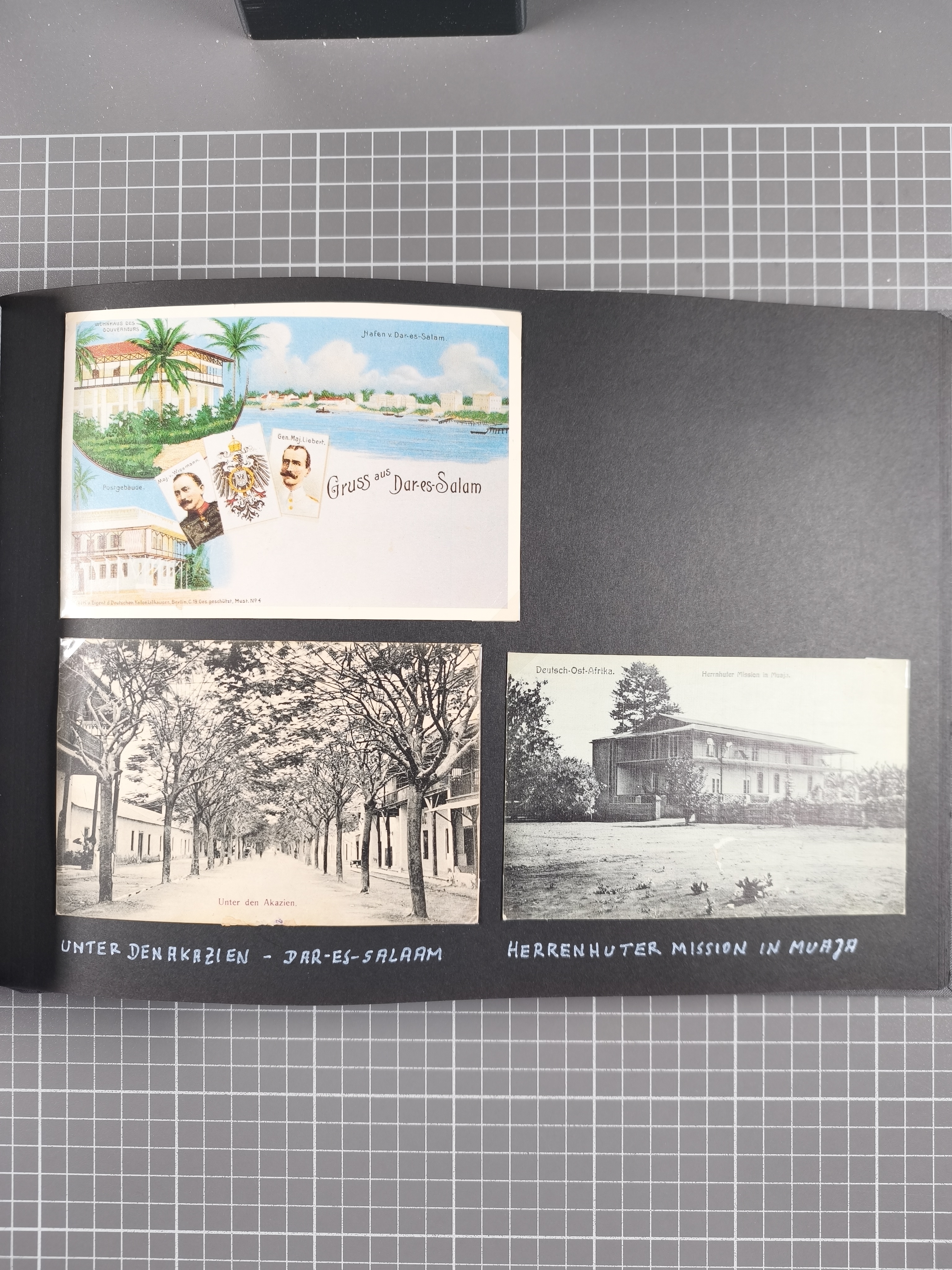 1887/1920, drei Fotoalben der Kaufmann-Familie Paul Devers aus DOA mit etlichen Original-Fotos und vielen Kopien, dabei u.a. einige großformatige Original-Fotos aus Zanzibar ab 1887 und einige Ansichtskarten. Dazu zwei weitere Fotoalben mit Kopien von Fotos des Fotografen Dobbertin